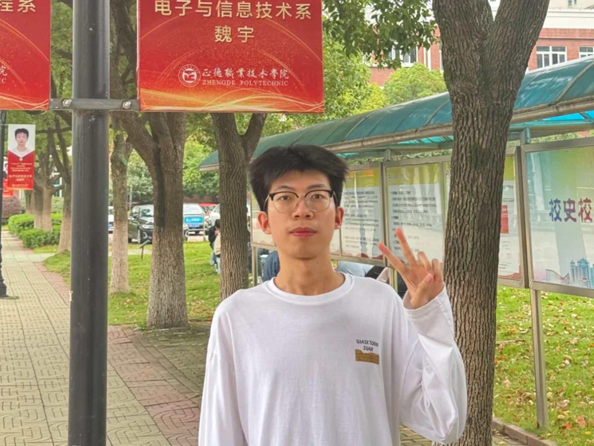 2022年,魏宇考入正德学院。在校期间,他以勤俭节约、努力奋斗的标准严格要求自己,先后获得学院“优秀共青团员”“优秀青年志愿者”“优秀学生干部”“三好学生”、学院“奋进新征程 青春勇担当”党的二十大演讲比赛一等奖、学院团干部思政技能大比武二等奖、国家励志奖学金、学院一等奖学金、江苏省省级“三好学生”等荣誉称号。