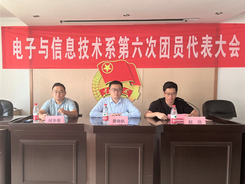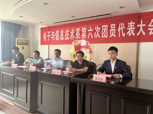 2022年9月8日,电子与信息技术系团总支在7508会议室举行第六次团员代表大会,院团委书记黄晓帆、电信系党支部书记赵欣、团总支书记何华智、兄弟院系团总支代表和40名电信系学生代表参加会议。会议由电信系团总支韦自豪同学主持。