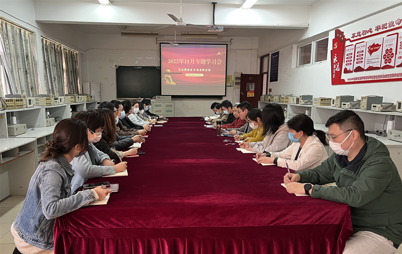 11月3日下午,电子与信息技术系党支部在6206教室召开2022年11月专题学习会,支部书记赵欣主持,支部全体党员教师参会。
