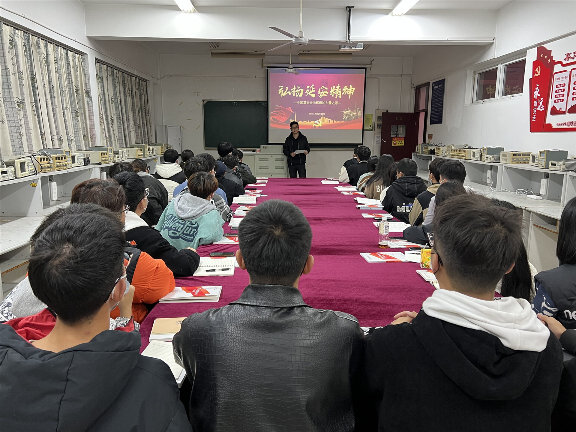 赵欣首先祝贺在场的入党积极分子能够参与此次党的基本知识培训。随后,赵欣围绕“弘扬延安精神 传承优良作风”这一主题,从延安精神形成的历史条件,延安精神的原生形态和主要内容,延安精神的时代价值,让延安精神放射出新的时代光芒四方面展开,为入党积极分子上了一堂生动的党课。他指出“延安精神”是一种实事求是、理论联系实践的精神,更是一种全心全意为人民服务的精神和自力更生艰苦奋斗的精神。最后他强调作为入党积极分子首先要端正入党动机,提高党课学习的积极性、主动性,认真做好笔记,不断提升政治素养,争取在结业考试中取得优异的成绩。