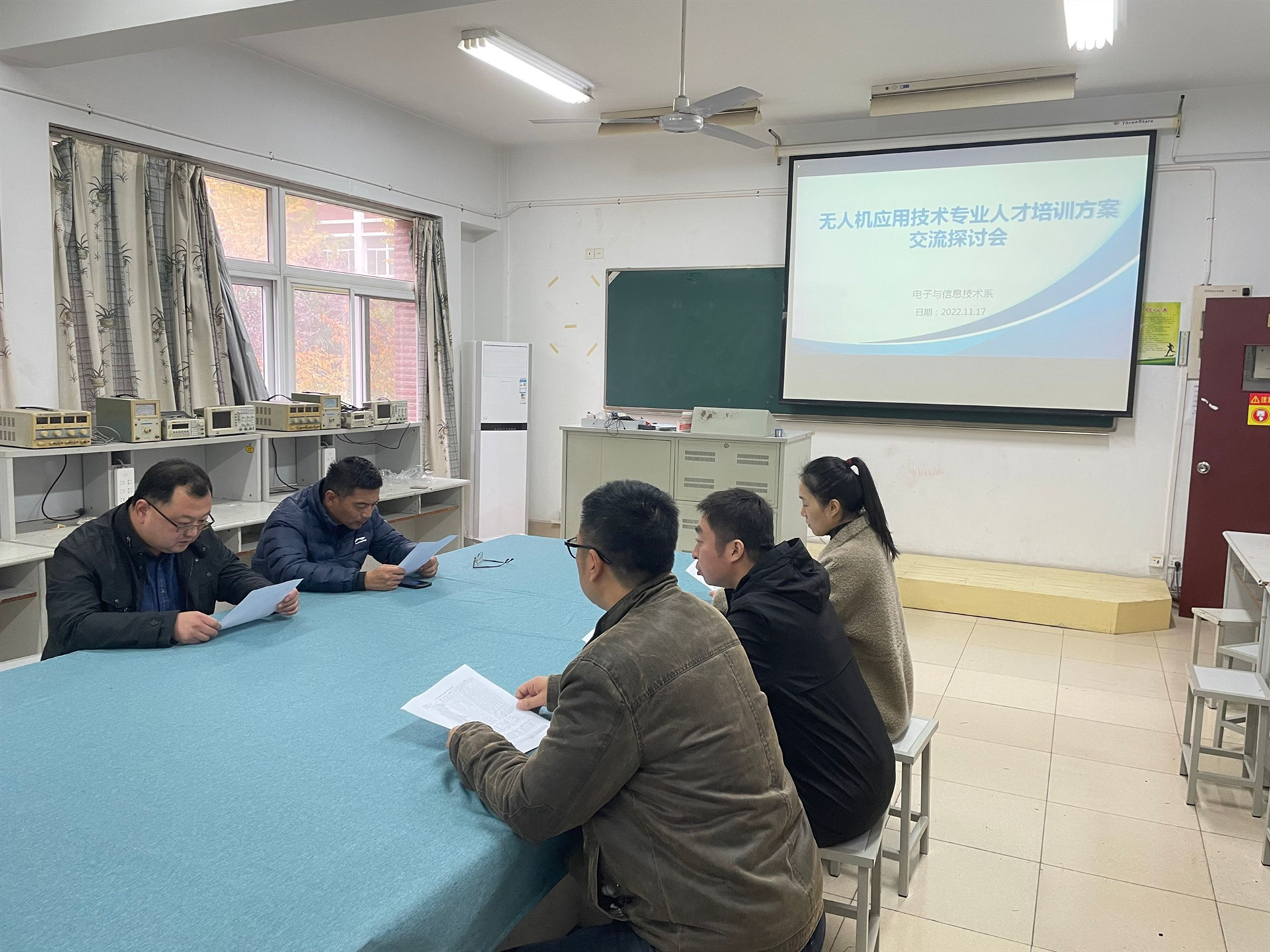 讲座后,王剑一行与无人机应用技术专业教研组教师进行了人才培养方案的交流研讨,为我院无人机应用技术专业修订新的人才培养方案提供了新思路。