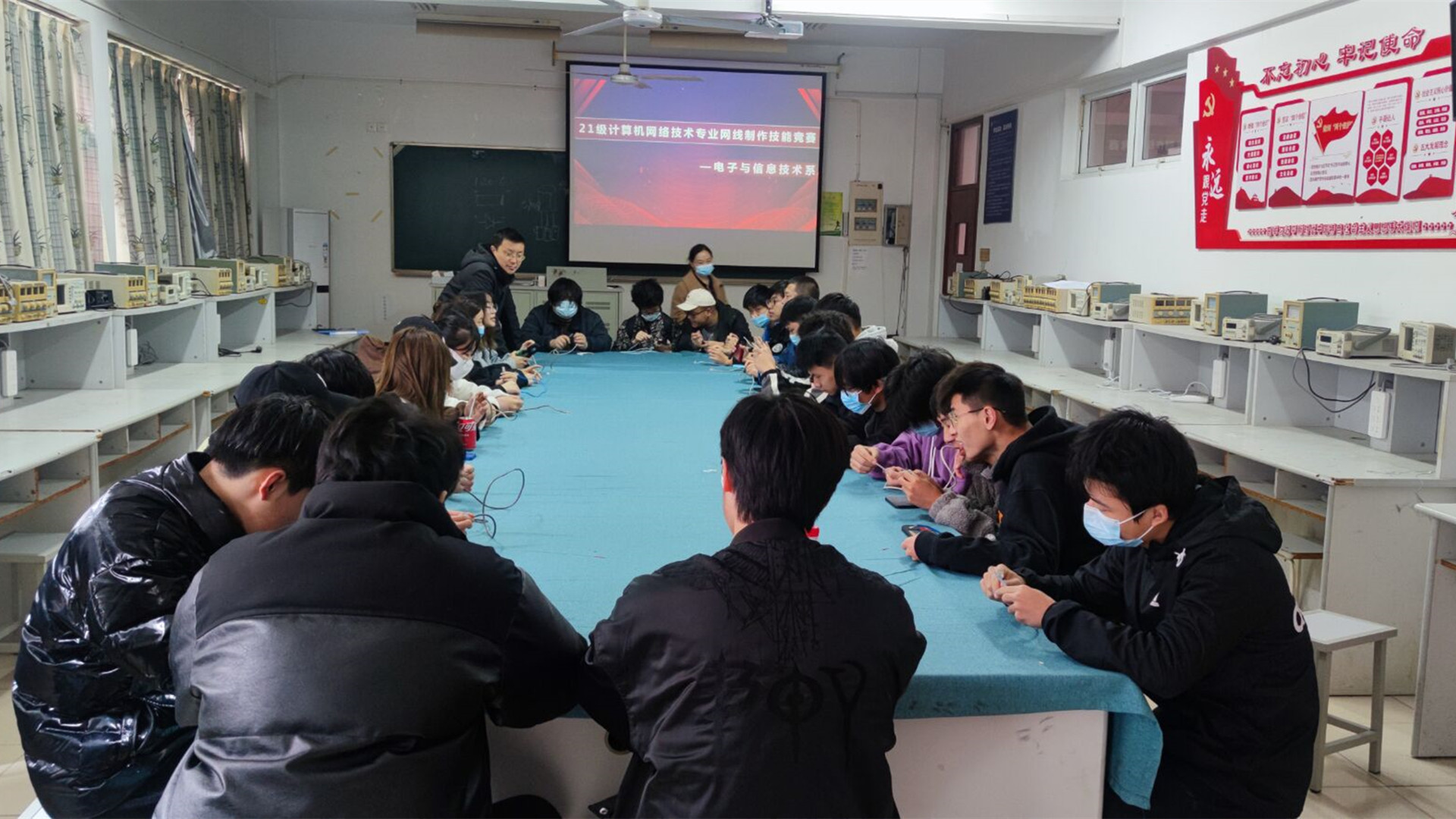 为了提升学生的动手操作能力,考验学生专业知识运用情况,11月28日,电子与信息技术系组织2021级计算机网络技术专业学生在6206教室进行网线制作技能竞赛。本次竞赛由电信系计算机网络技术专业负责人张韬担任指导老师兼现场评委。