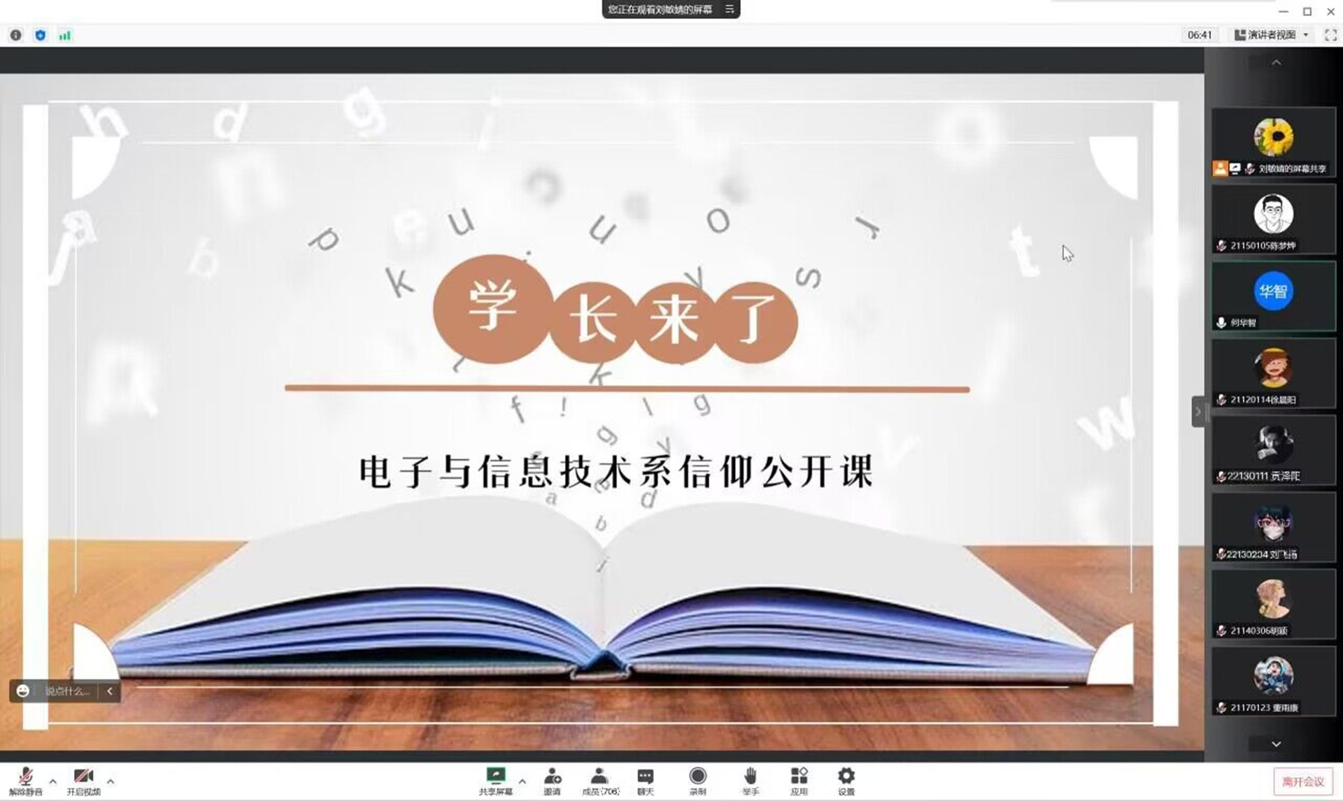 本次信仰公开课在思想引领上给电信系学子指明了方向、在个人提升上提供了途径,为电子与信息技术系培养信仰坚定、思想先进、能力突出、素质优良的新时代青年大学生打下了基础。奋进新征程,勇担新使命,希望同学们深入学习领会党的二十大精神,牢记习近平总书记对青年人的嘱托,以身边的优秀校友为榜样,踔厉奋发,勇毅前行,为中国特色社会主义建设贡献青春和力量。
