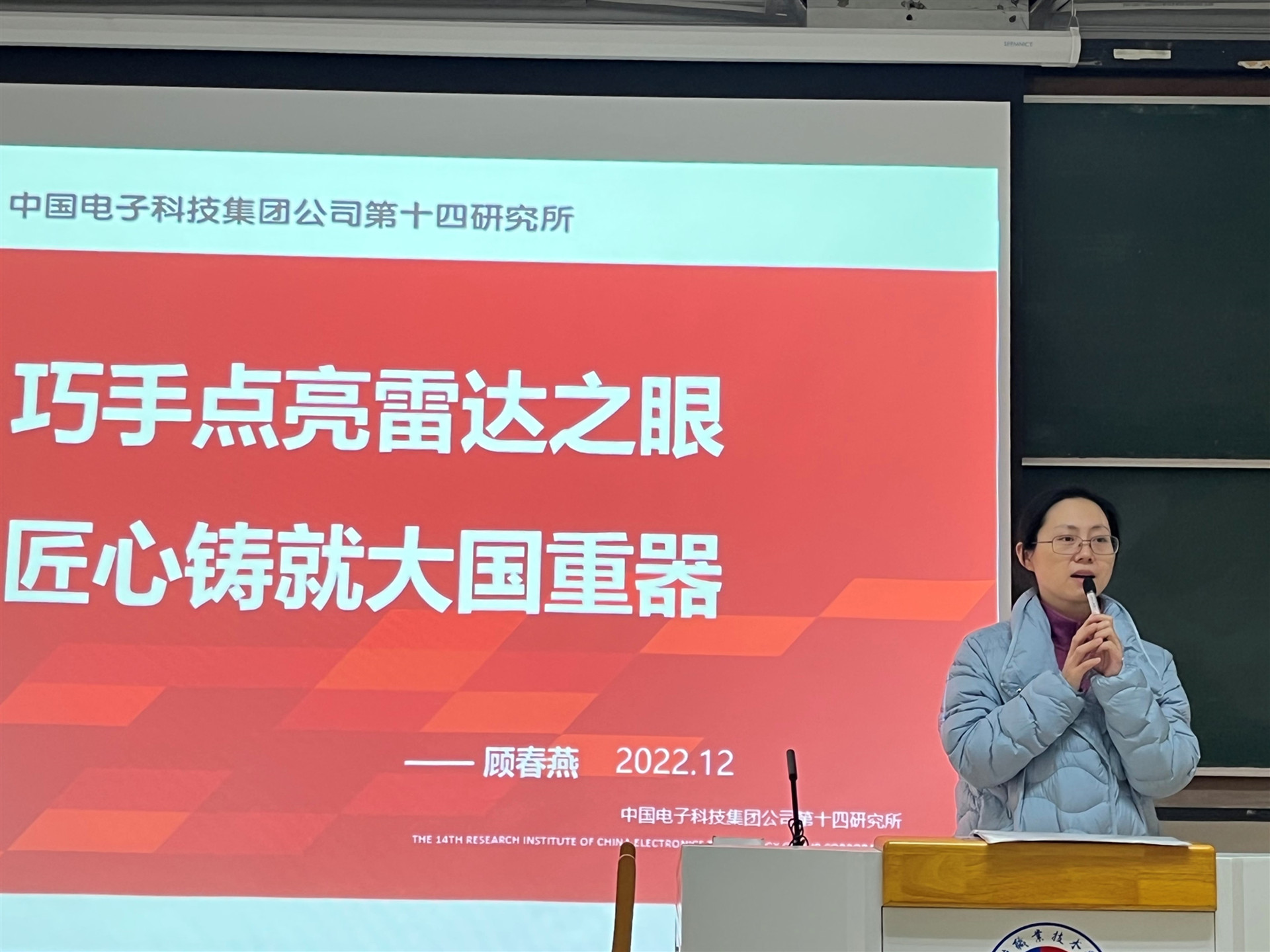 为深入学习贯彻党的二十大精神,切实推动党的二十大精神进校园,12月8日,电子与信息技术系邀请我院优秀毕业生、中国电子科技集团第14研究所雷达收发组件总装师、“大国工匠”顾春燕和南京杰迈视讯科技有限公司技术总监、“江苏省优秀共青团干部”、南京市中青年拔尖人才培养对象陆国强来到我院,对2022级电子信息工程技术专业学生开展“劳模工匠进校园”专题教育活动。旨在引领广大青年学生把思想、认识和行动统一到党的二十大精神上来,以劳模工匠为榜样,坚定理想信念,勇于开拓创新,始终埋头苦干,矢志拼搏奋斗,在新征程上更好肩负起使命责任,坚定成为全面建成社会主义现代化强国、实现第二个百年奋斗目标的参与者、建设者、贡献者。