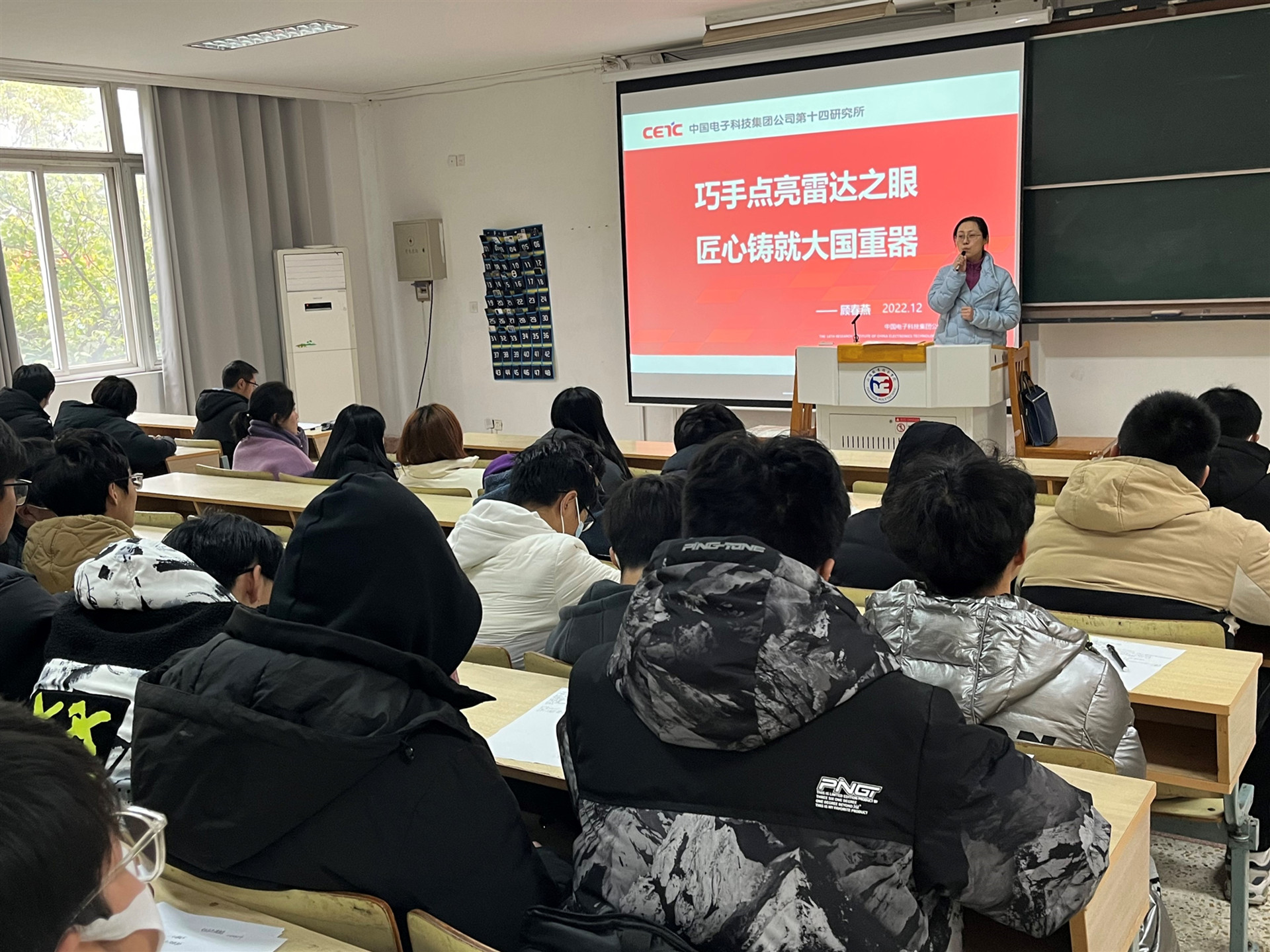 顾春燕以《巧手点亮雷达之眼,匠心铸就大国重器》为主题,结合自身的奋斗故事,勉励同学们志存高远、埋头刻苦、热爱劳动和创造,努力使自己成长为堪当民族复兴重任的时代新人。她表示“二十大报告强调伟大的事业是干出来的,我理解的工匠精神内涵就是踏实做好技术工作,将手中的作品做到极致,同时还要保持不断地学习,不断挑战自己,才能站在行业的最前端”。同学们被她精益求精、刻苦奋斗的精神深深吸引,讲座赢得大家的阵阵掌声。