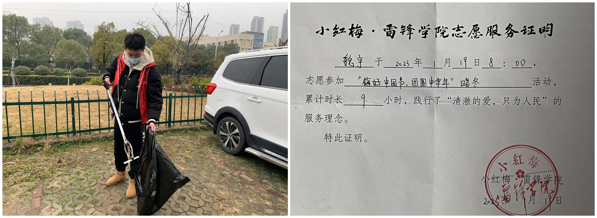 心系公益活动,保护生态环境。多名学生充分发挥青年志愿者的积极作用,持续深入开展“捡垃圾,促环保”志愿服务活动,大力弘扬“奉献、友爱、互助、进步”的志愿者精神。