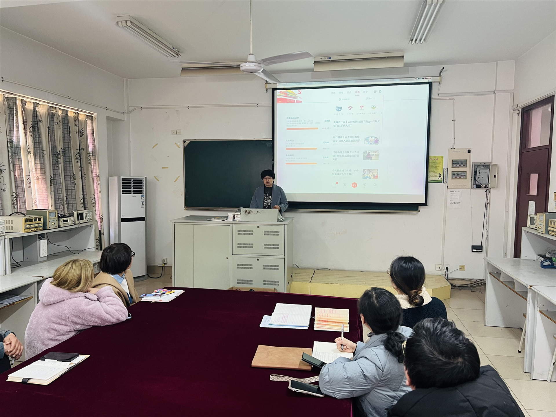 在分享交流环节,赵欣邀请“学习强国之星”、党员教师戴慧给大家做“学习强国”学习平台经验交流分享。戴慧围绕“学习强国”学习平台的特色功能,讲述了自己如何在“学习强国”学习平台上吸收精神营养。大家一致认为,“学习强国”学习平台资源丰富,对于贯彻落实习近平总书记系列重要讲话精神以及掌握时事热点具有很好的助推作用。