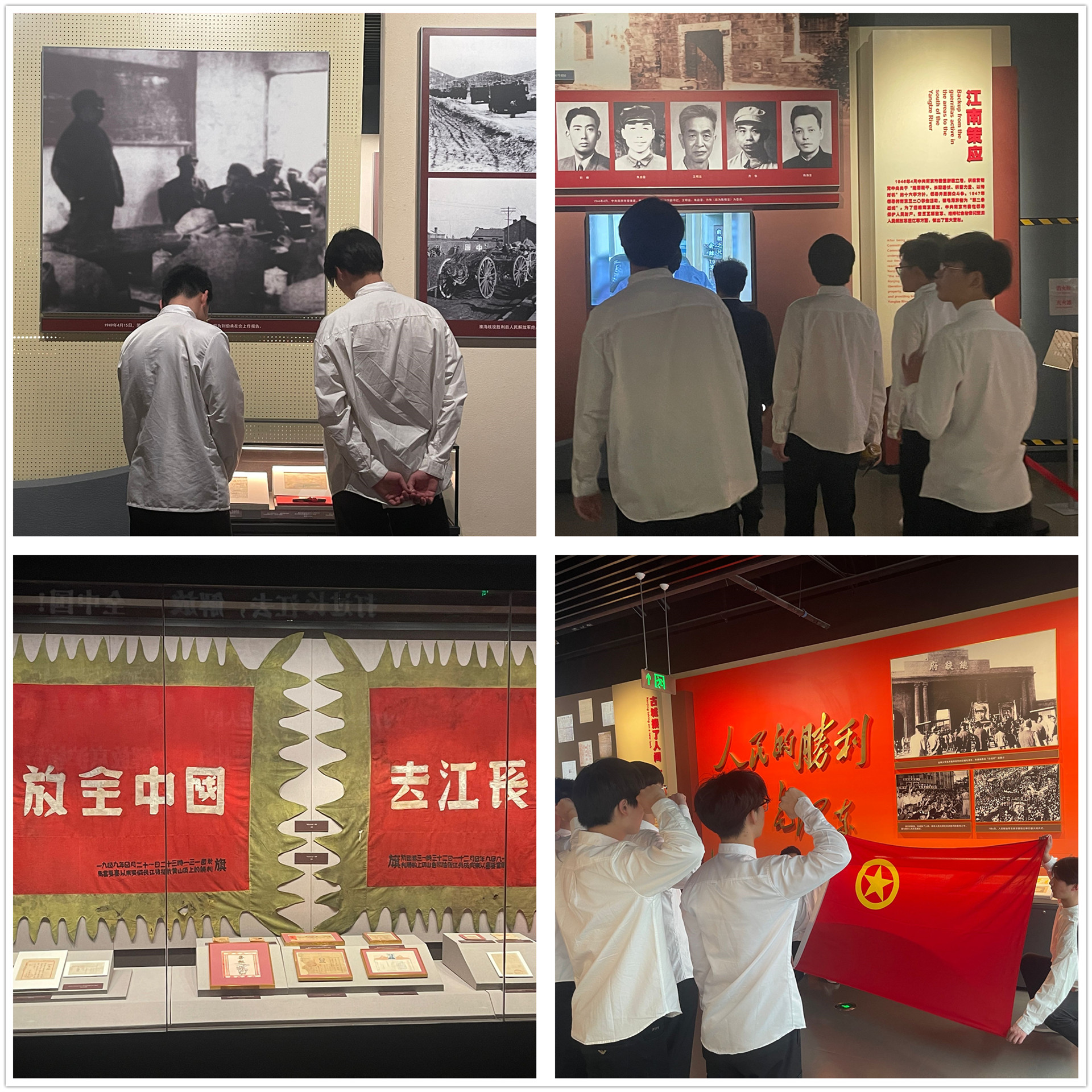 在渡江胜利纪念馆,电信系新发展团员们跟随着纪念馆讲解员的脚步依次参观解放广场、渡江战役总前委群雕、七大展厅、半景画馆、功勋长廊及千余件珍贵的革命文物。在一件件展品面前,大家驻足观看,在一幅幅图片前,大家认真聆听讲解,在巨幅“胜利之师”浮雕下,新发展团员们深切缅怀革命先烈,向革命先烈们致以最崇高的敬意。在活动的最后,电信系新发展团员们一起重温入团誓词,进一步坚定了团员青年的理想信念。