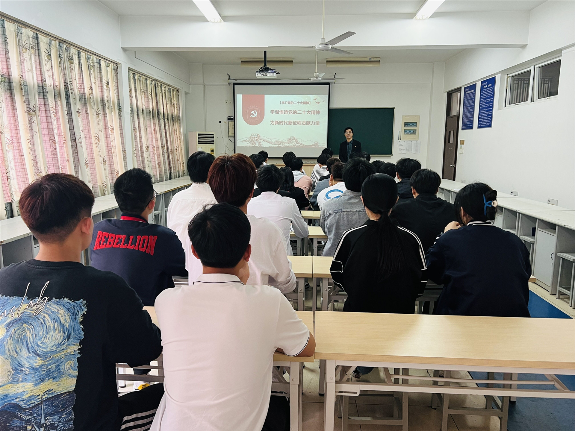 会上,赵欣以“学深悟透党的二十大精神,为新时代新征程贡献力量”这一主题,从党的二十大概括,党的二十大报告主要内容,党的二十大报告中的新表述、新概括、新论断,如何学好党的二十大精神等四方面展开,为入党积极分子上了一堂生动的党课。他指出学好二十大精神,我们要重点掌握:高举一面旗,紧绷一根弦,守住一个魂,走好一程路。最后他强调作为入党积极分子首先要端正入党动机,树立远大的理想和志愿,担负起党和时代所赋予的历史使命。