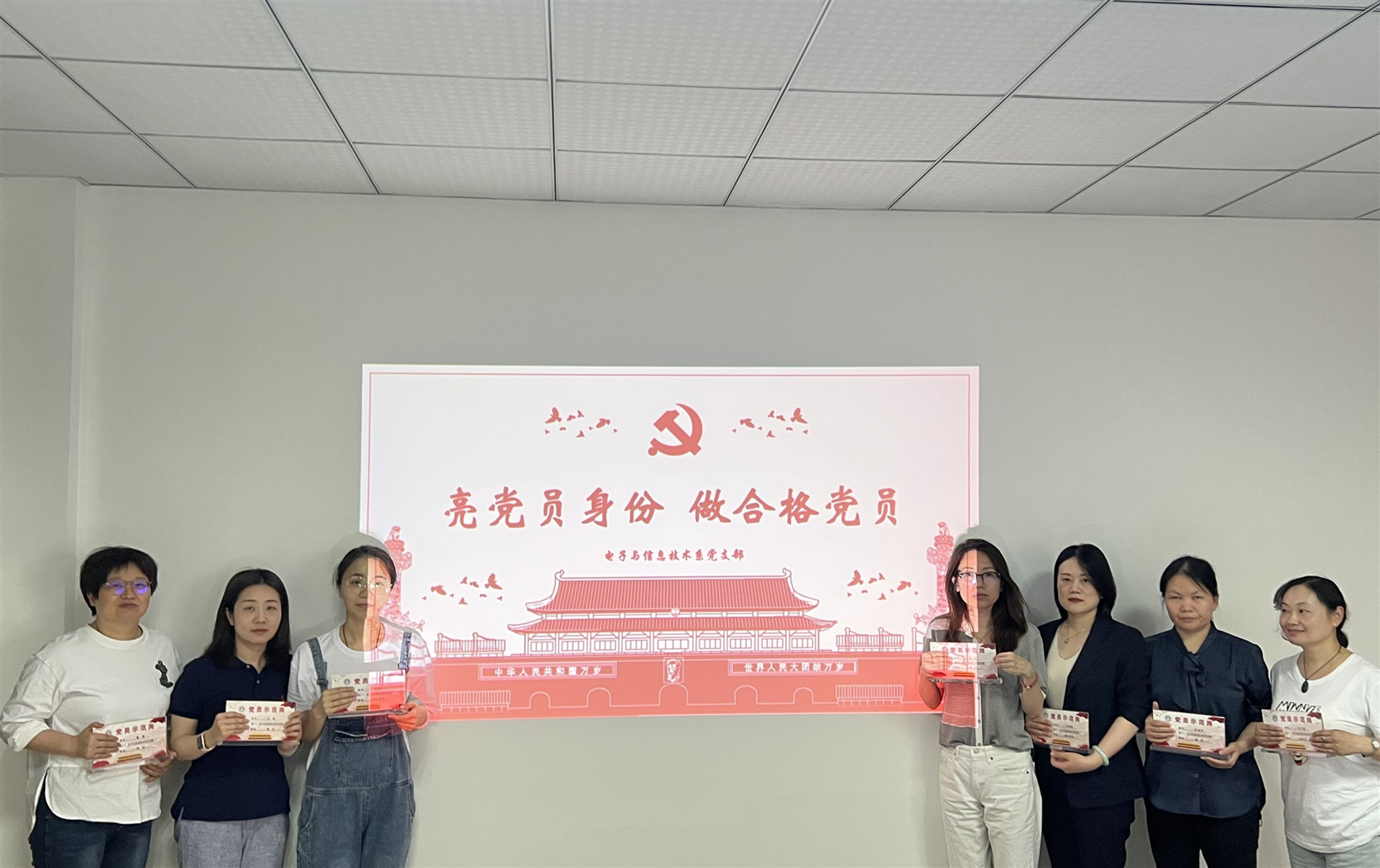 近期,为加强我系教师党员和辅导员队伍建设,强化宗旨意识、服务意识、责任意识和奉献意识,提高履职尽责能力,电子与信息技术系对全系教工党员开展了挂牌亮身份活动,让“红色名片”不断被擦亮。有效推动党员的身份“亮”起来、作用“强”起来、形象“树”起来,激励广大教工党员勇挑新担当,营造出比学赶超的浓厚氛围。