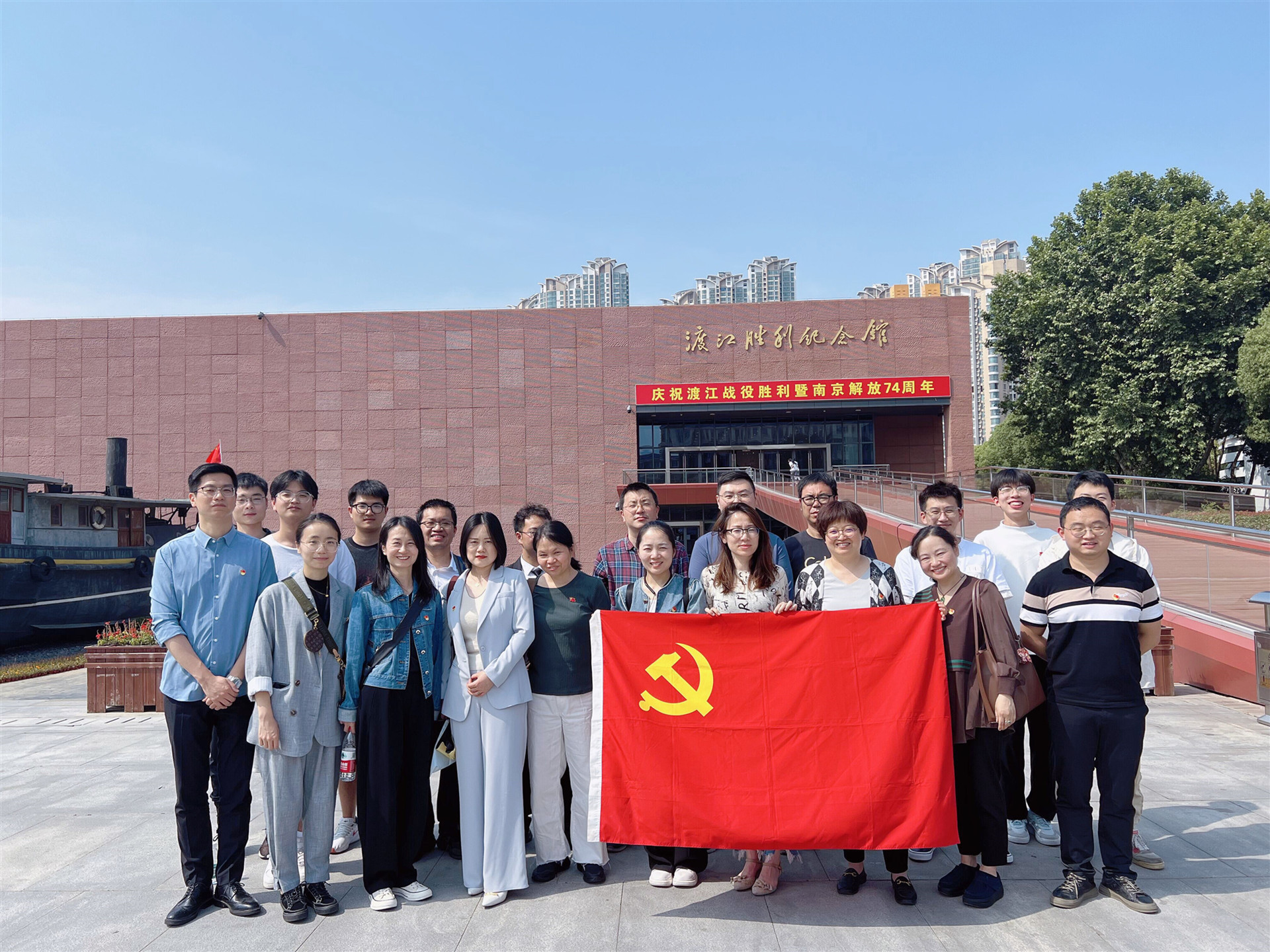为深入学习贯彻党的二十大精神,凝聚党建引领合力,上好“大思政课”,推进爱国主义教育走深走实,2023年5月25日下午,电子与信息技术系党支部赴渡江胜利纪念馆开展“聆听革命故事,传承红色基因”主题党日活动。支部党员、入党积极分子参加活动。