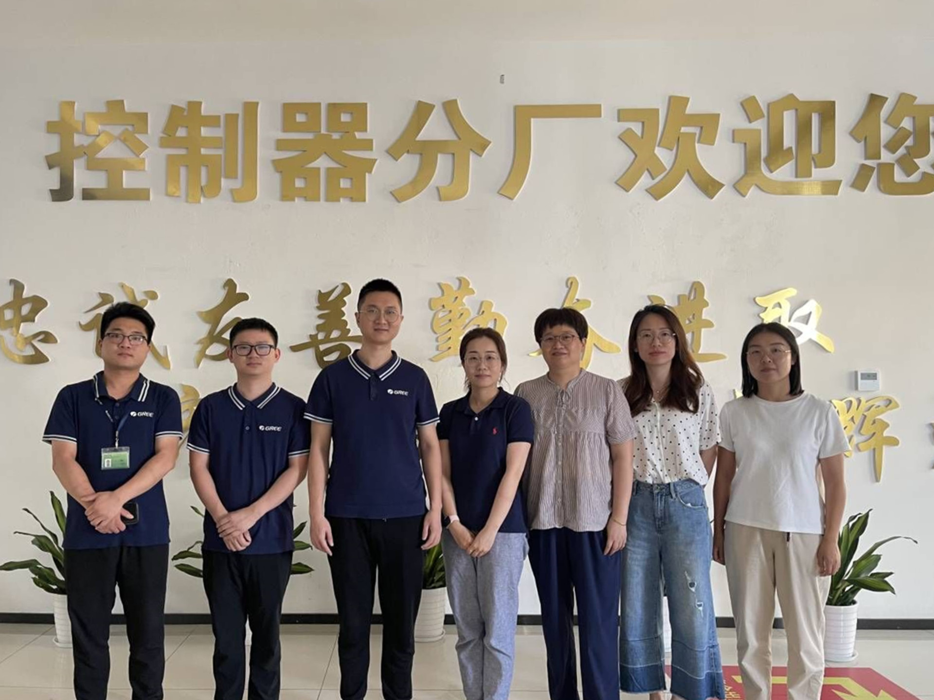 8月7日,电子与信息技术系副主任刘佳(主持工作)带领专任教师朱洁、戴慧、王丹来到格力电器(南京)有限公司控制器分厂开展技能专项训练并走访探望实习学生,控制器分厂厂长田楷,工程师胡瀚、颜晶等热情接待刘佳一行。