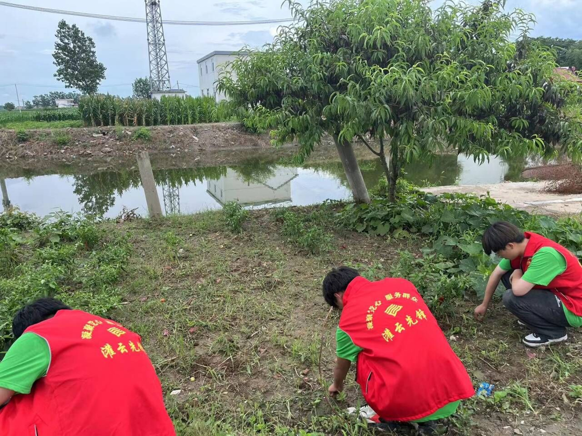 实践团来到茆庄村河道边,开展河道两侧垃圾清理,共同守护灌云县茆庄村“清水绿岸”。实践团成员就地清理沿河道巡查发现的废弃饮料瓶、易拉罐、香烟头等河岸垃圾,共同维护河道环境卫生,为打造茆庄河道风景线贡献青春力量。