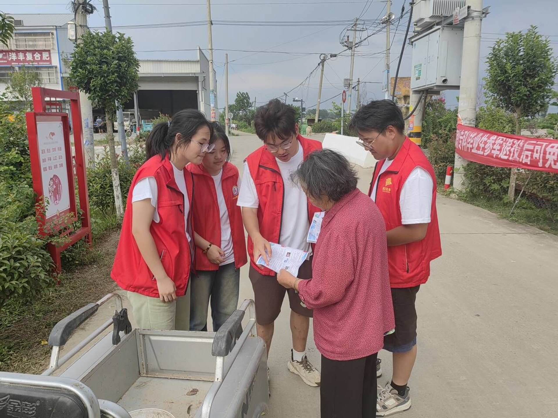 26日至27日,实践团跟随团队指导老师谢雅婷、王雯走进农户家中,分组向农户开展反诈、节约用水用电及普法等公益宣传,开展知识科普并分发宣传材料,进一步引导当地村民防范电信诈骗、节约用水用电等。