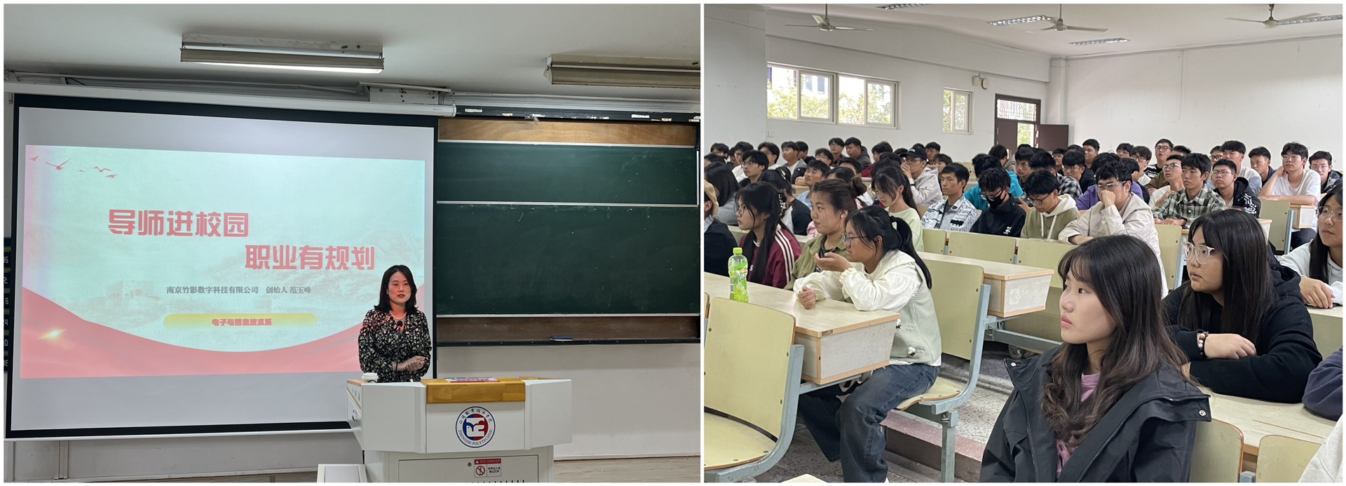 为引导学生树立正确的择业观和就业观,做好未来职业生涯规划,10月12日下午,电子与信息技术系邀请南京竹影数字科技有限公司创始人、南京多环科技有限公司总经理范玉峰在1104教室针对2023级电信系计算机专业学生开展“行业先锋进校园”暨“信仰公开课”主题活动,活动由电子与信息技术系计算机应用技术专业负责人王晓娟老师主持。