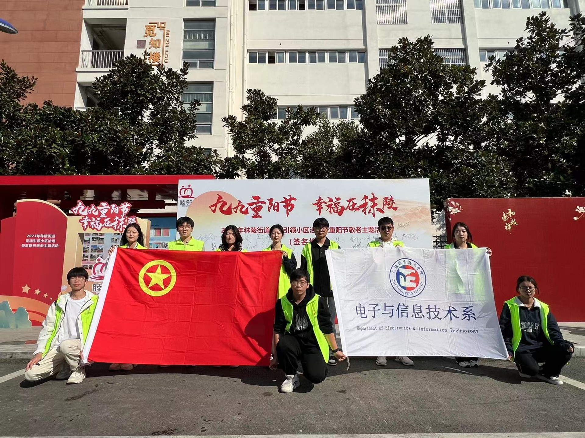 10月21日,江宁区秣陵街道开展党建引领小区治理暨“九九重阳节 幸福在秣陵”敬老主题活动,主分会场直播连线,电子与信息技术系志愿者全程参与2023年“九九重阳节,幸福在秣陵”主题活动,丰富的文艺活动、贴心的便民服务“市集”与独居老人走访收获社区群众点赞,幸福重阳节成为街道党建引领小区治理以及正德青年学子“社区有我,青春报到”的生动注脚。
