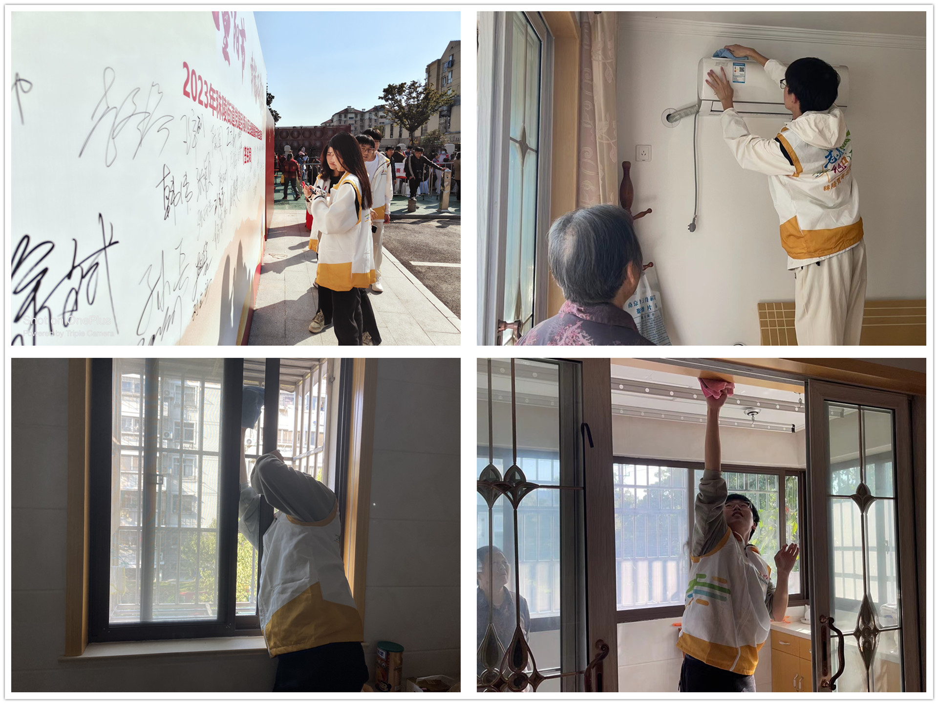 老人事,是大事,更是“大家事”。2022年11月以来,秣陵街道太平社区与电子与信息技术系共建“大学生志愿服务基地”, “奶奶好,我们是南京正德学院的大学生志愿者,帮您做家务”,带上扫帚、拖把,拿上棉质毛巾,志愿者与街道工作人员一同走进独居老人家中。来到“卫生死角”前,为社区老人将一扇扇窗玻璃擦的亮堂堂。