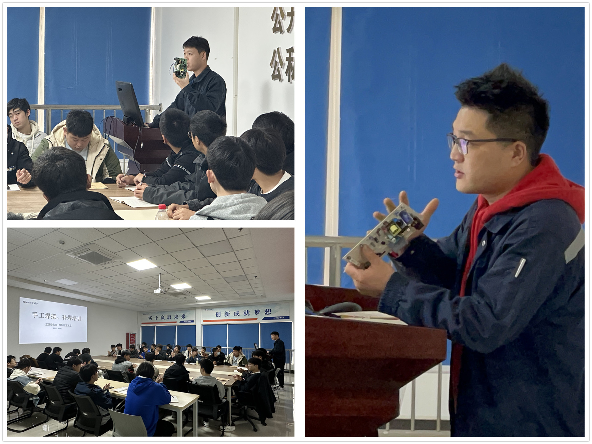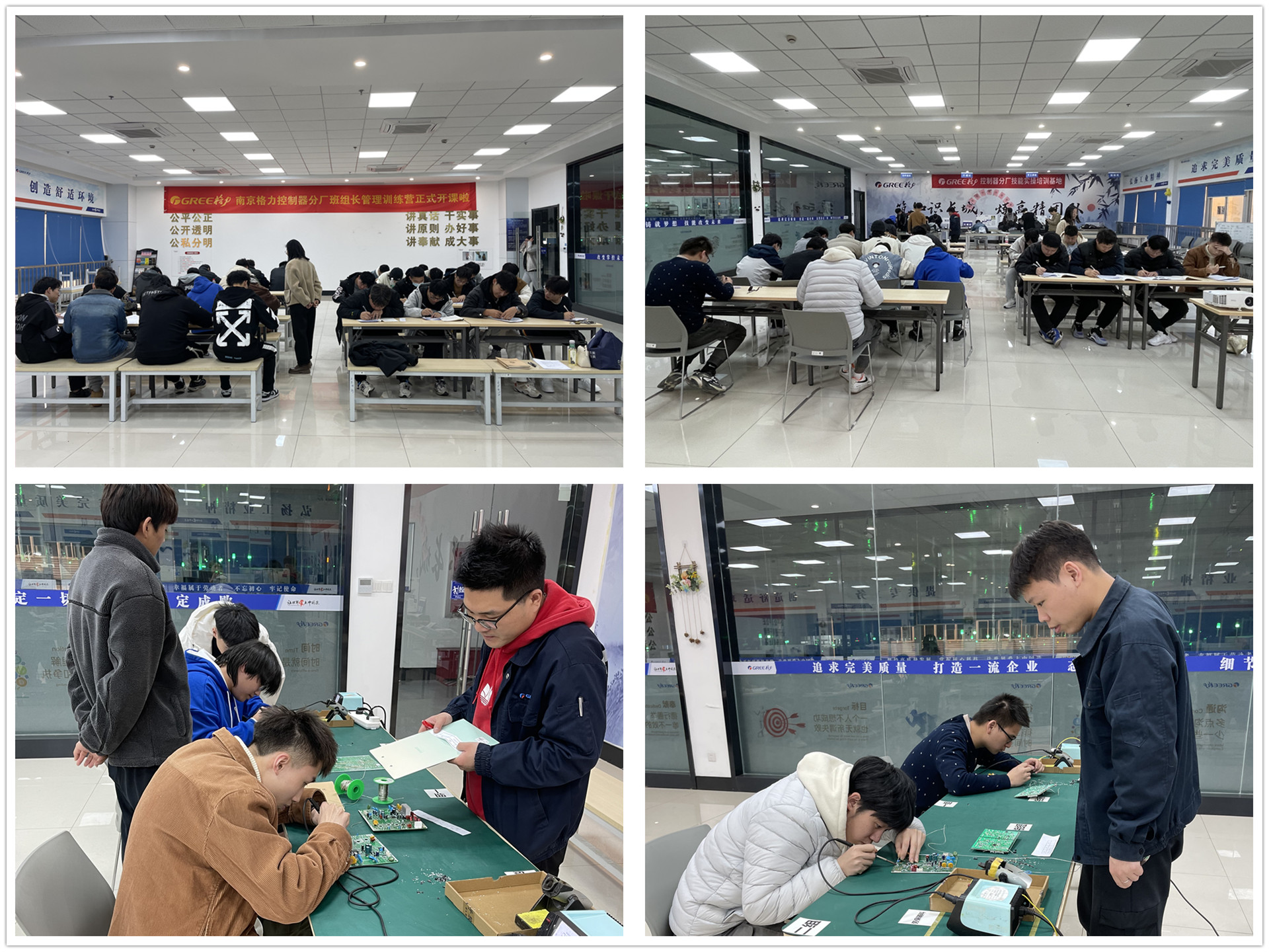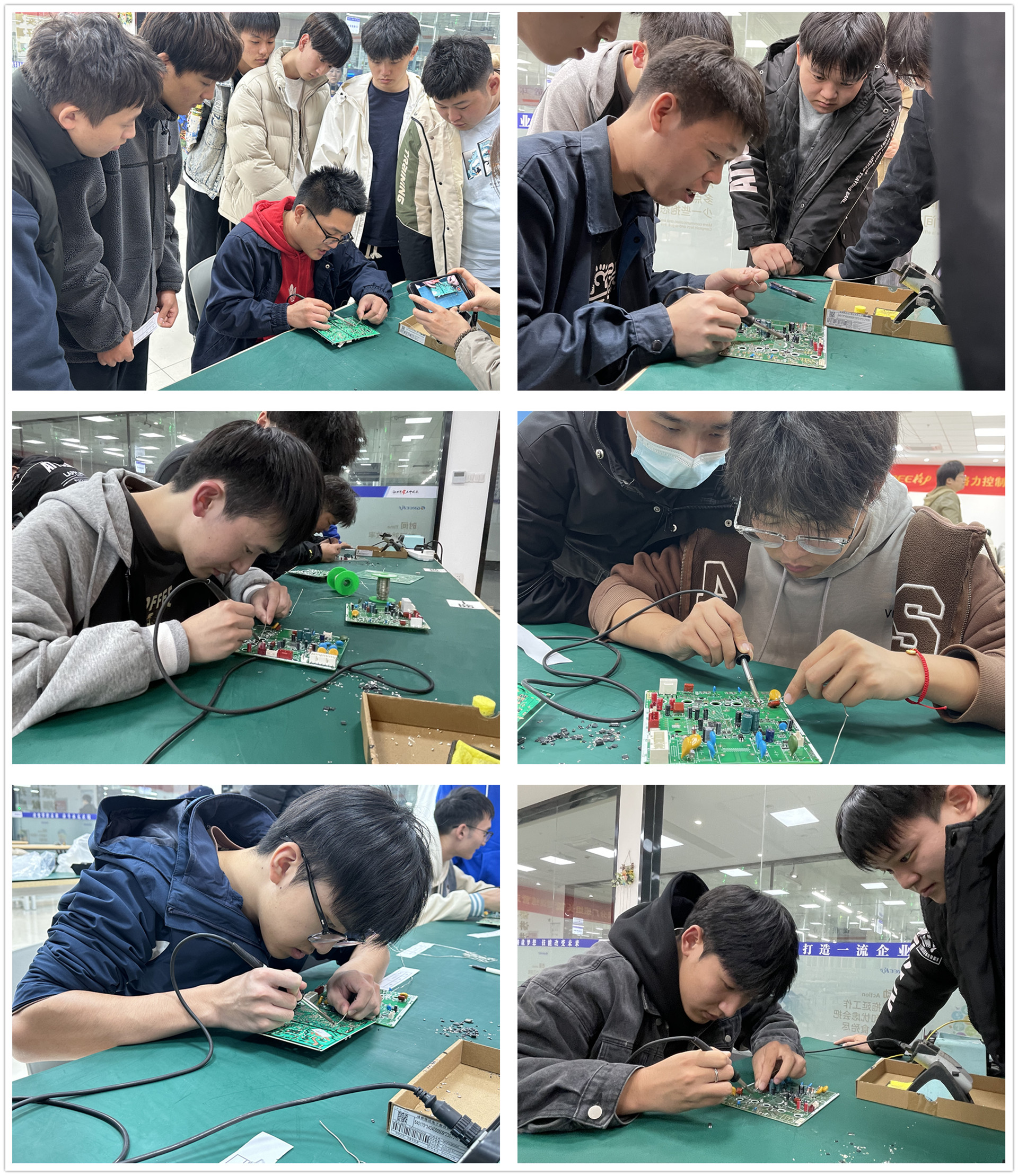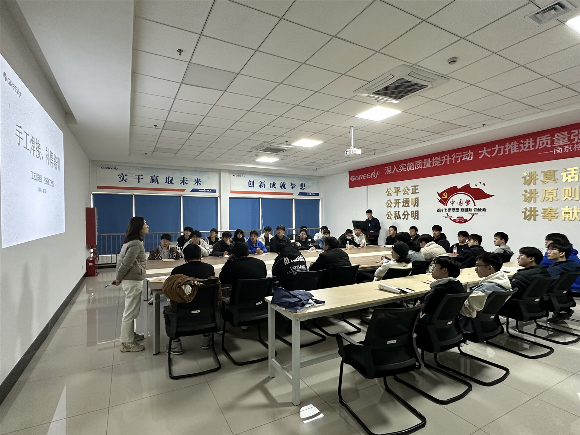 本次教学试点在格力电器控制器分厂进行,包括理论、实操和现场考核三个部分。理论部分分别由控制器工艺室副主任连兴旺和质检科科长胡瀚从手工焊接、补焊技术和静电防护及工艺要求等多个方面给向学生进行了讲解;实操部分先由连兴旺和胡瀚向学生现场演示手工拖焊与贴片元件焊接的规范操作,再分组对学生进行实操指导;现场考核环节分成两部分,实操部分由刘佳、戴慧老师配合连兴旺、胡瀚对学生的焊接操作进行分组考核、打分,理论部分由王丹老师负责组织学生进行笔试和监考。