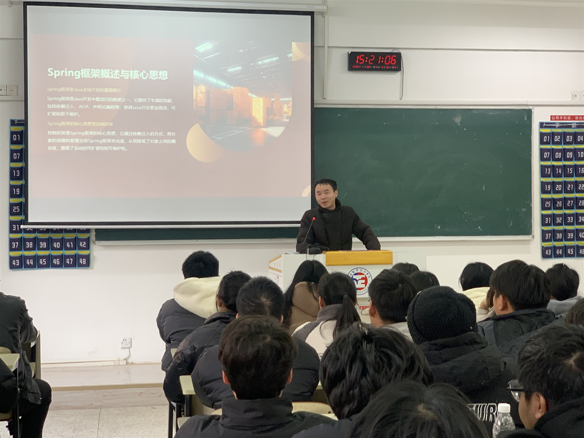 交流会上,参会嘉宾范玉峰、张林炜、于华贵分别用通俗易懂的语言,结合自身经历和案例,将复杂的技术概念解释得浅显易懂,在分享自己在行业中的成功经验的同时,还将企业中的最新技术和解决方案向同学们进行展示,激发了参会学生对于计算机科学领域的探索和热情。