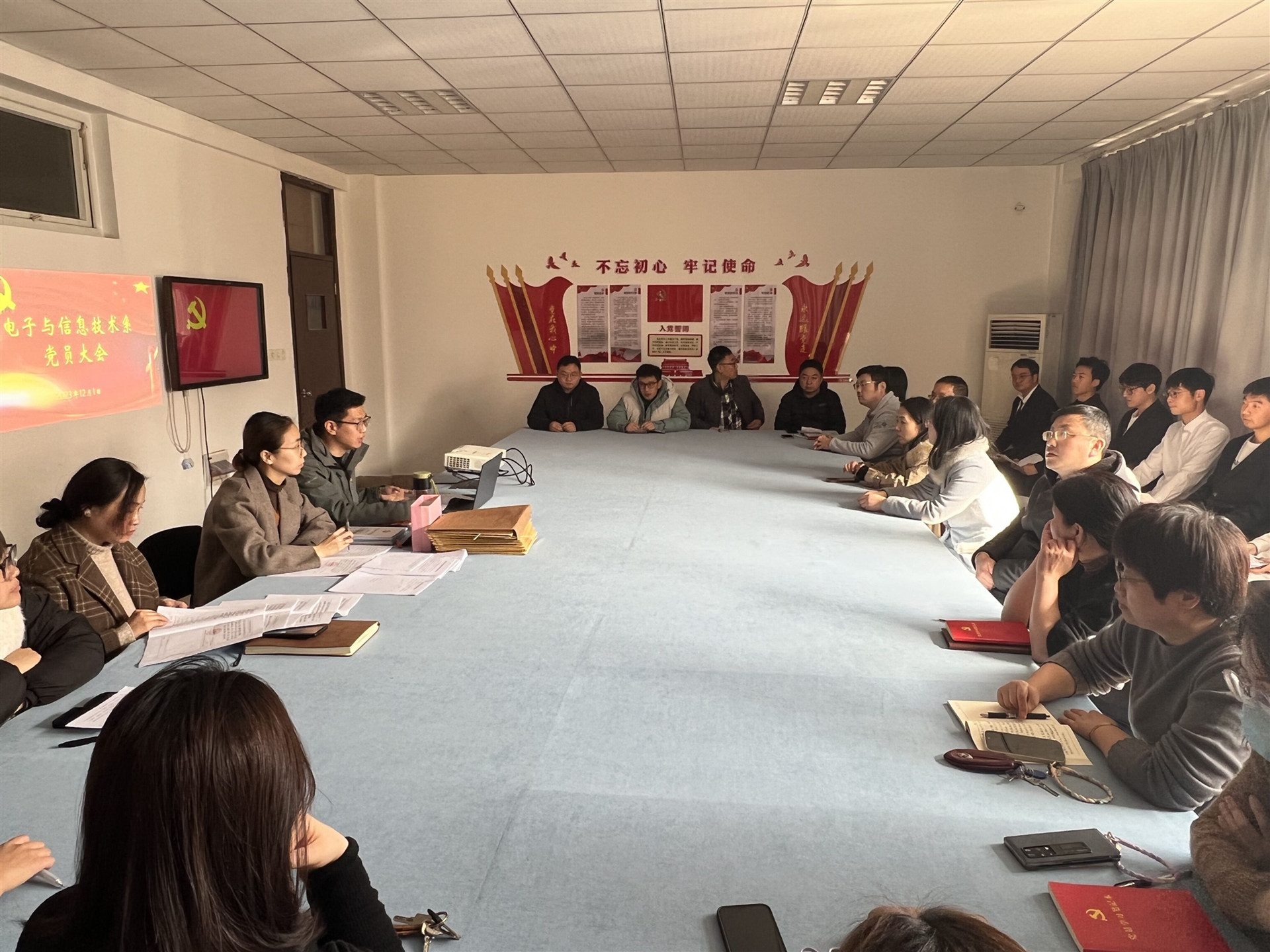 2023年12月1日中午,电子与信息技术系党支部在6407会议室召开2023年下半年接收预备党员暨预备党员转正大会。全体正式党员、预备党员以及拟接收预备党员参加会议,会议由支部书记赵欣主持。