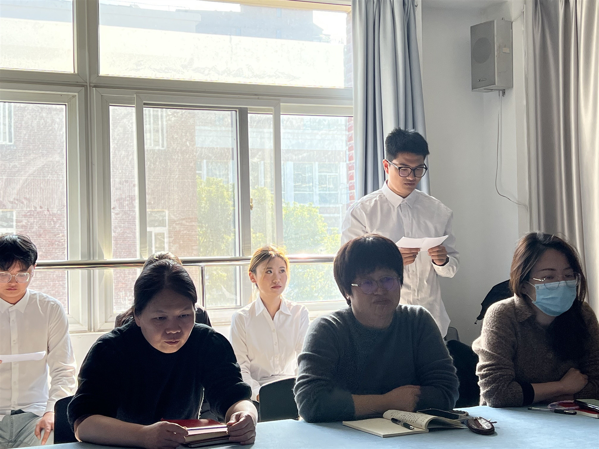 接着,会议进行预备党员转正环节。预备党员殷筱雯对自己预备期间的思想、生活、学习等各方面的情况做了简要汇报,表达了入党的志愿和决心。经过与会正式党员的讨论与不记名投票表决,组织委员刘敏婧宣布与会正式党员一致同意殷筱雯同志按期转正。