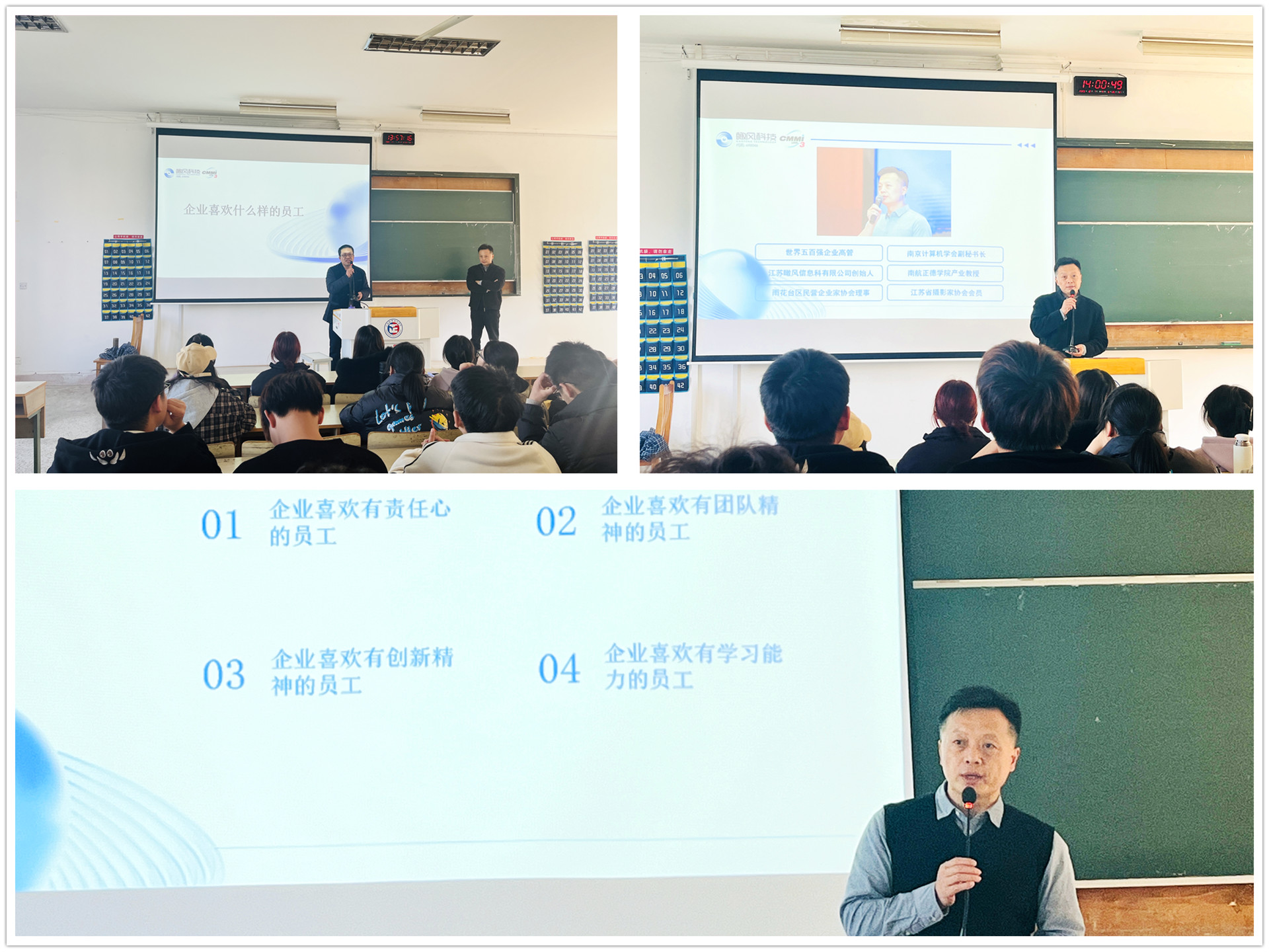 讲座中,陶露以《企业喜欢什么样的员工》为主题,向同学们分享了自己的工作经历和创业经历,从最初世界通信巨头富士通公司的学徒,到独当一面的项目负责人;从软件工程师转型到销售岗位,再成为高级管理人员,最后自主创业成为南京IT行业的领军人,陶露向同学们展示了他脚踏实地、积极向上的企业家风貌。本次讲座引起了同学们的极大兴趣,课堂上踊跃发言,陶露与同学们互动交流,一一解答了学生们的提问。活动尾声,部分学生代表还上台分享了此次活动的收获和感想。活动现场气氛十分热烈,取得了很好的效果。同学们纷纷表示此次讲座受益匪浅,对自己的职业规划有了更为清晰的认识和方向,在今后的学习和生活中,将不断努力学习,充实自己,为实现自己的职业梦想而不懈奋斗。