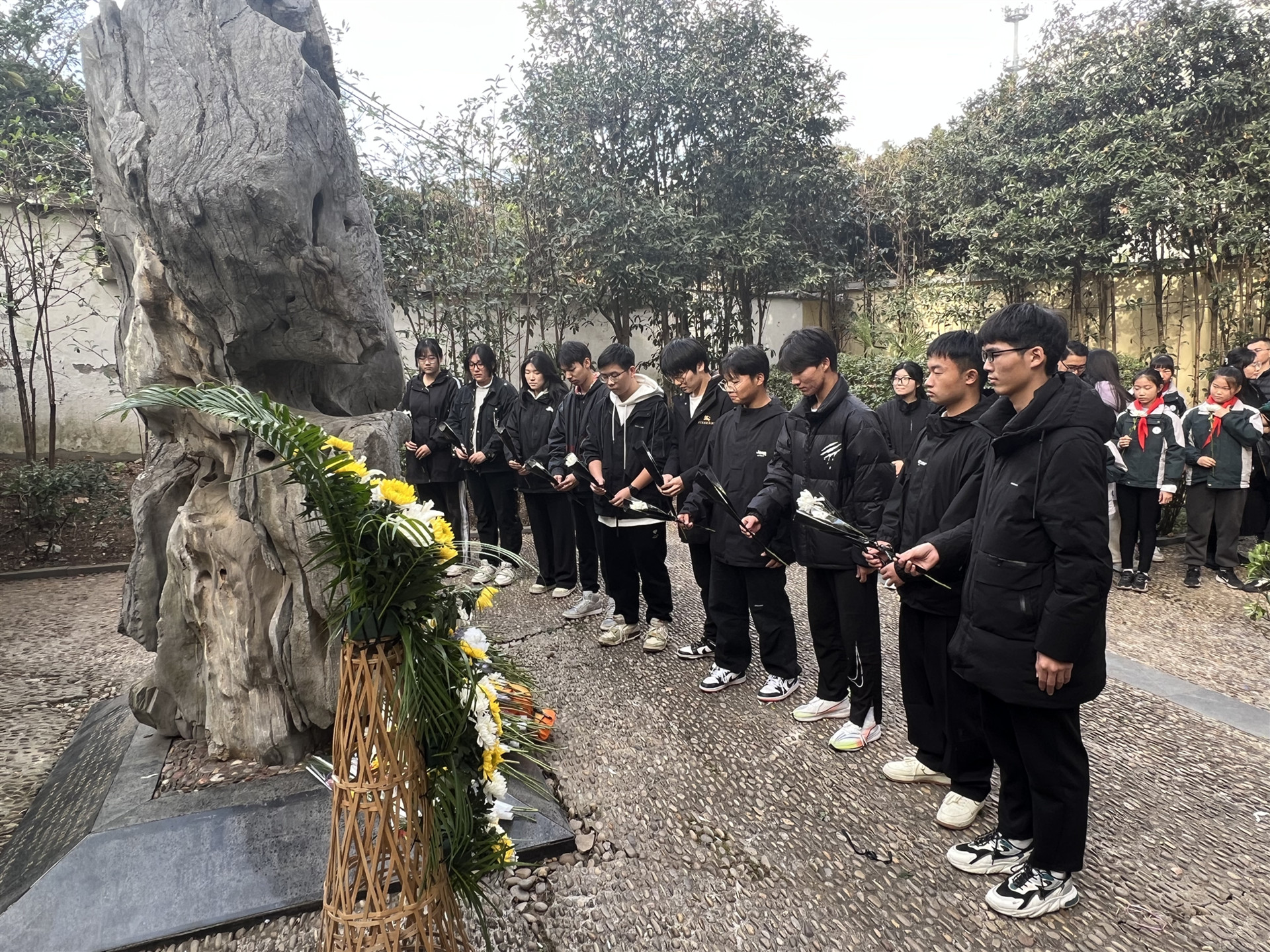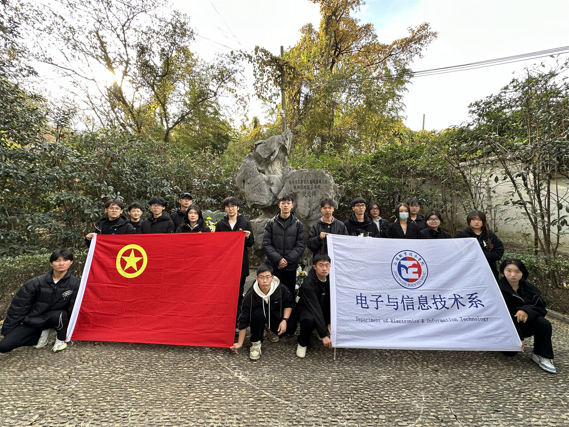 牢记历史,不忘过去,珍爱和平,开创未来。12月9日14时,电信系同学自发前往侵华日军南京大屠杀遇难同胞花神庙地区丛葬地纪念碑进行缅怀。电信系学生拾阶而上来到纪念碑广场,怀着无比沉重的心情在庄严肃穆的纪念碑前默哀、鞠躬,沉痛悼念惨遭日本侵略者杀戮的死难同胞,深切缅怀为赢得中国人民抗日战争胜利而牺牲的革命先烈,同学们献上手中的白菊向他们表示崇高的敬意。电信系学生在此次活动中不仅深切表达了对革命先烈和遇难同胞的哀思,也进一步深化了爱国情,坚定了强国志,明确了报国行。