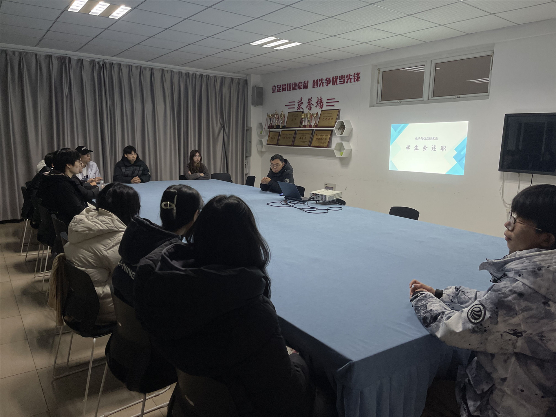 为进一步加强学生组织建设,提高学生干部工作主动性、提升管理与服务水平,电子与信息技术系于12月19日18时在6407会议室召开学生会述职评议会。电信系学生会各部门学生骨干参加述职,2022级、2023级学生代表参与评议会。会议由电子与信息技术系团总支书记何华智主持。