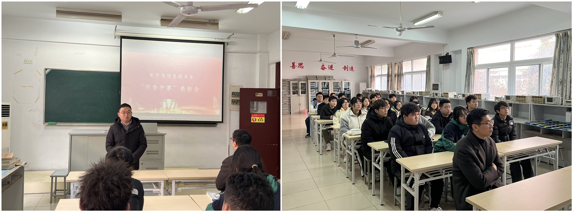 为表彰先进、树立典型,积极引导广大青年学生立志成才,奋力拼搏,1月9日中午,电子与信息技术系在6205教室召开2023-2024学年第一学期团总支学生会表彰大会。会议由电子与信息技术系学生会执行主席贡泽阳主持,电子与信息技术党支部书记赵欣、团总支书记何华智受邀参加本次大会。