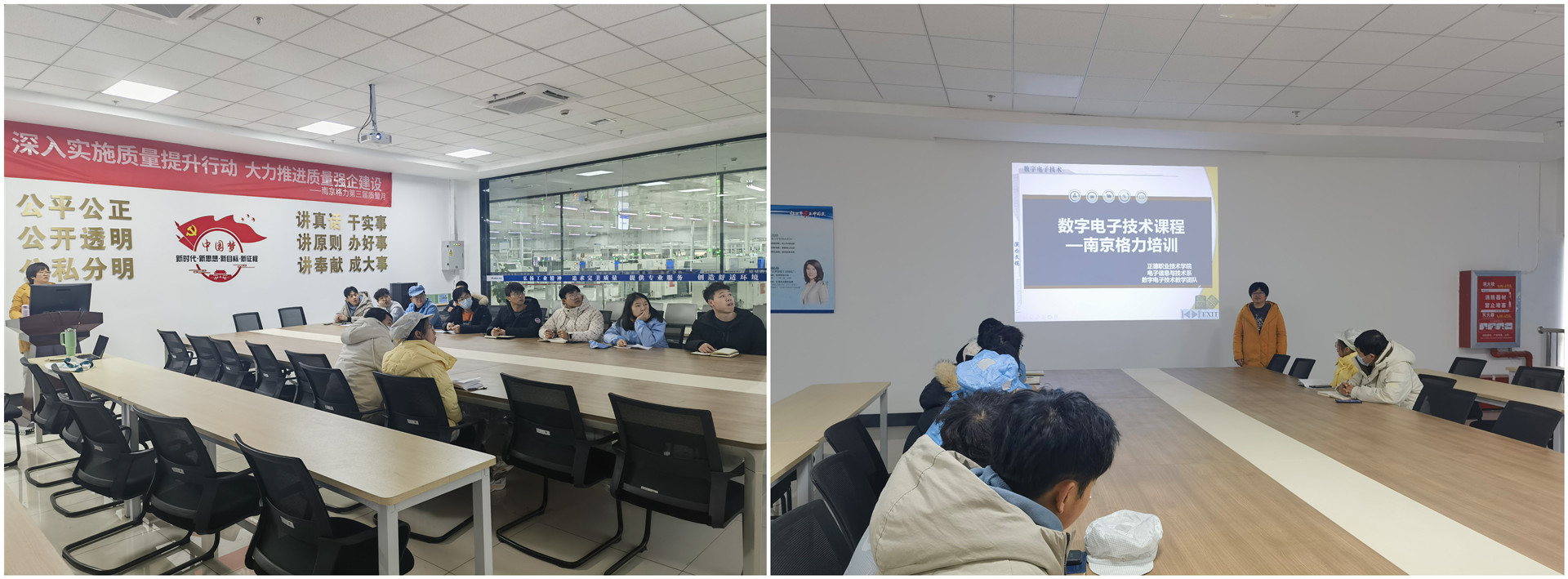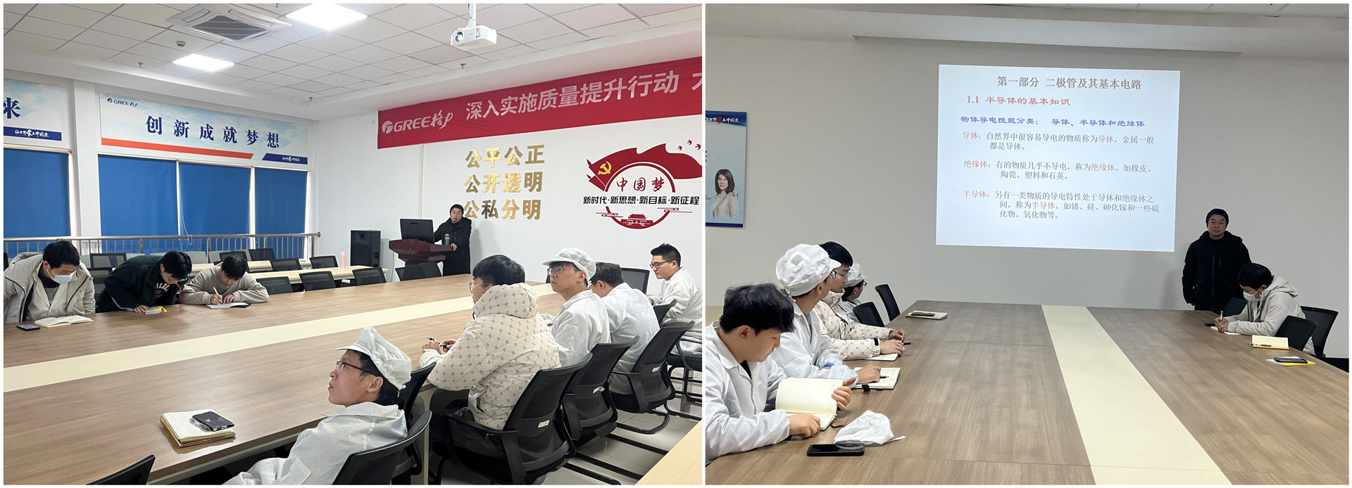 为深入与格力电器(南京)有限公司的校企合作,提升企业基层管理人员的专业知识,2023年12月至2024年1月,电子与信息技术系组织专任教师分为数字电子技术、单元电路、模拟电子技术3个课程组,分别赴格力电器(南京)有限公司控制器分厂,为基层管理人员开展电子技术专题培训。