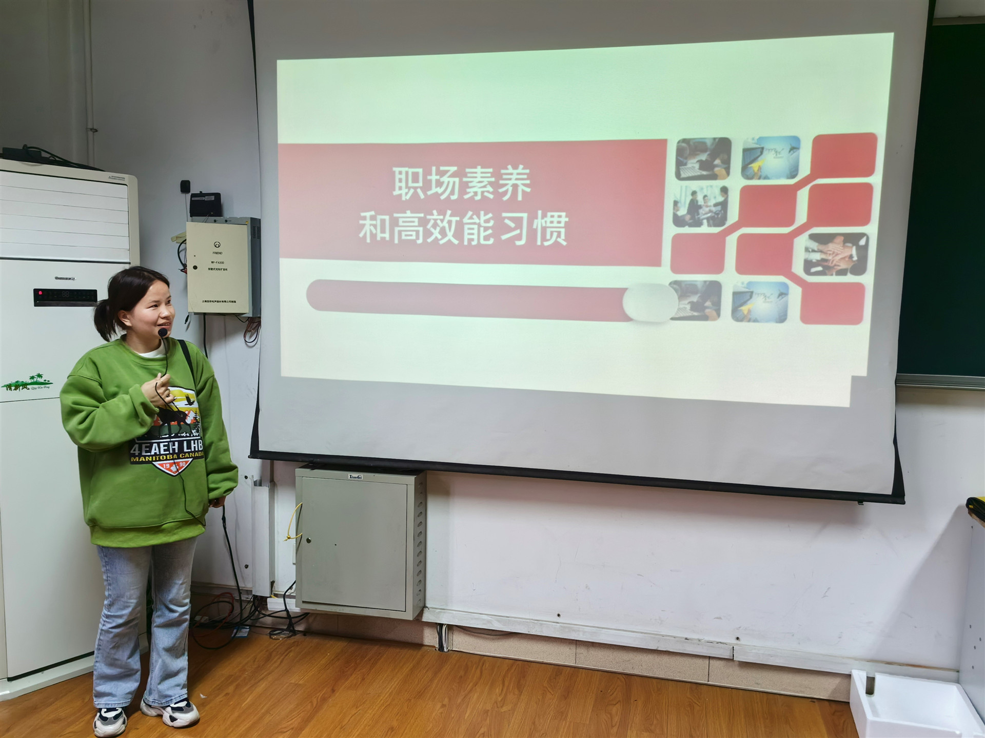 金岭紧扣2022级学生即将实习的特点,从树立正确职业化观念、摆正职业心态以及员工压力管理的方法三个方面来给同学们讲解职业素养和高效能的习惯。学生不仅收获了职业技能知识,丰富了实践经验,也对职业规划和未来发展方向有了更清晰的认识。