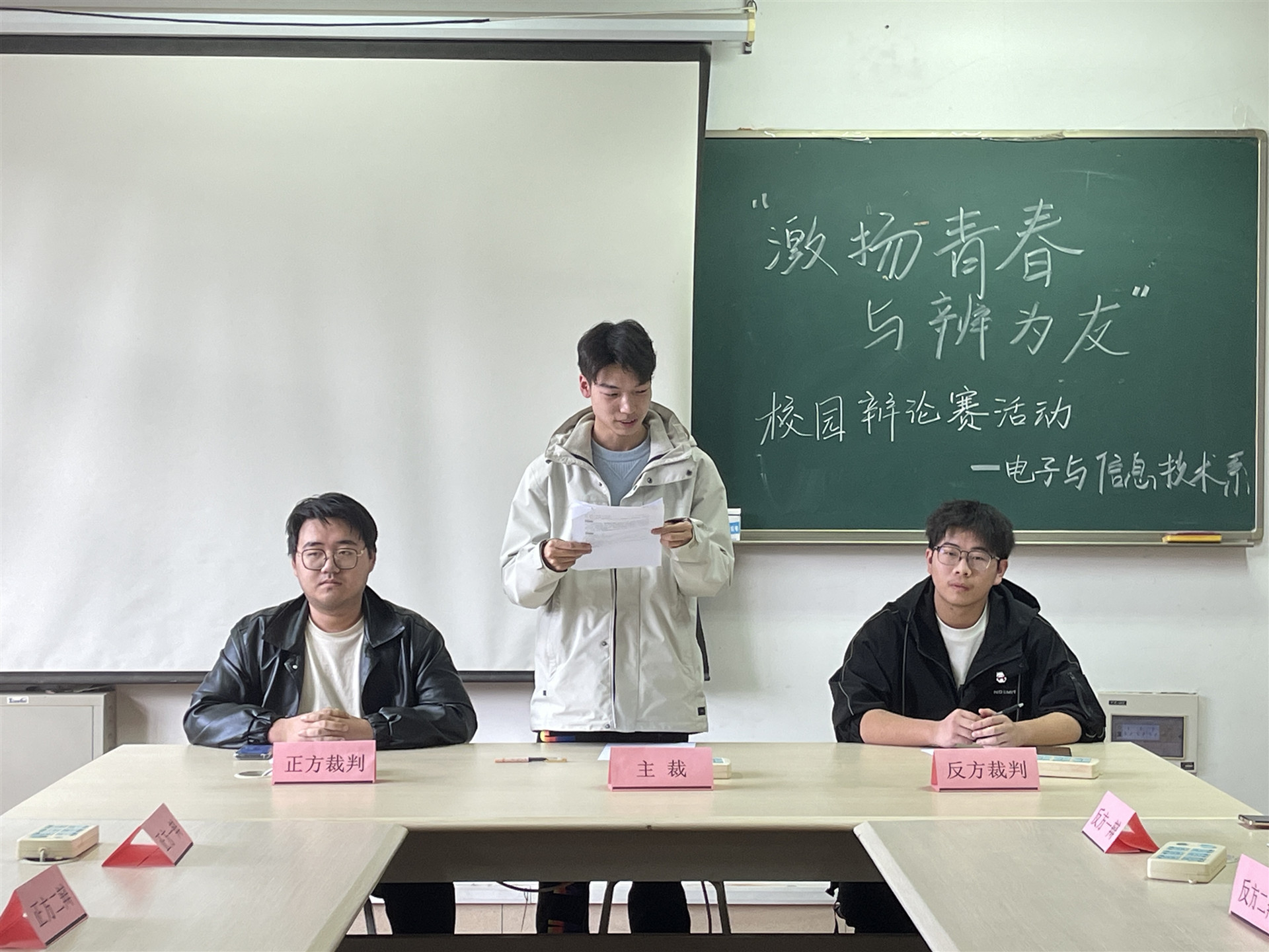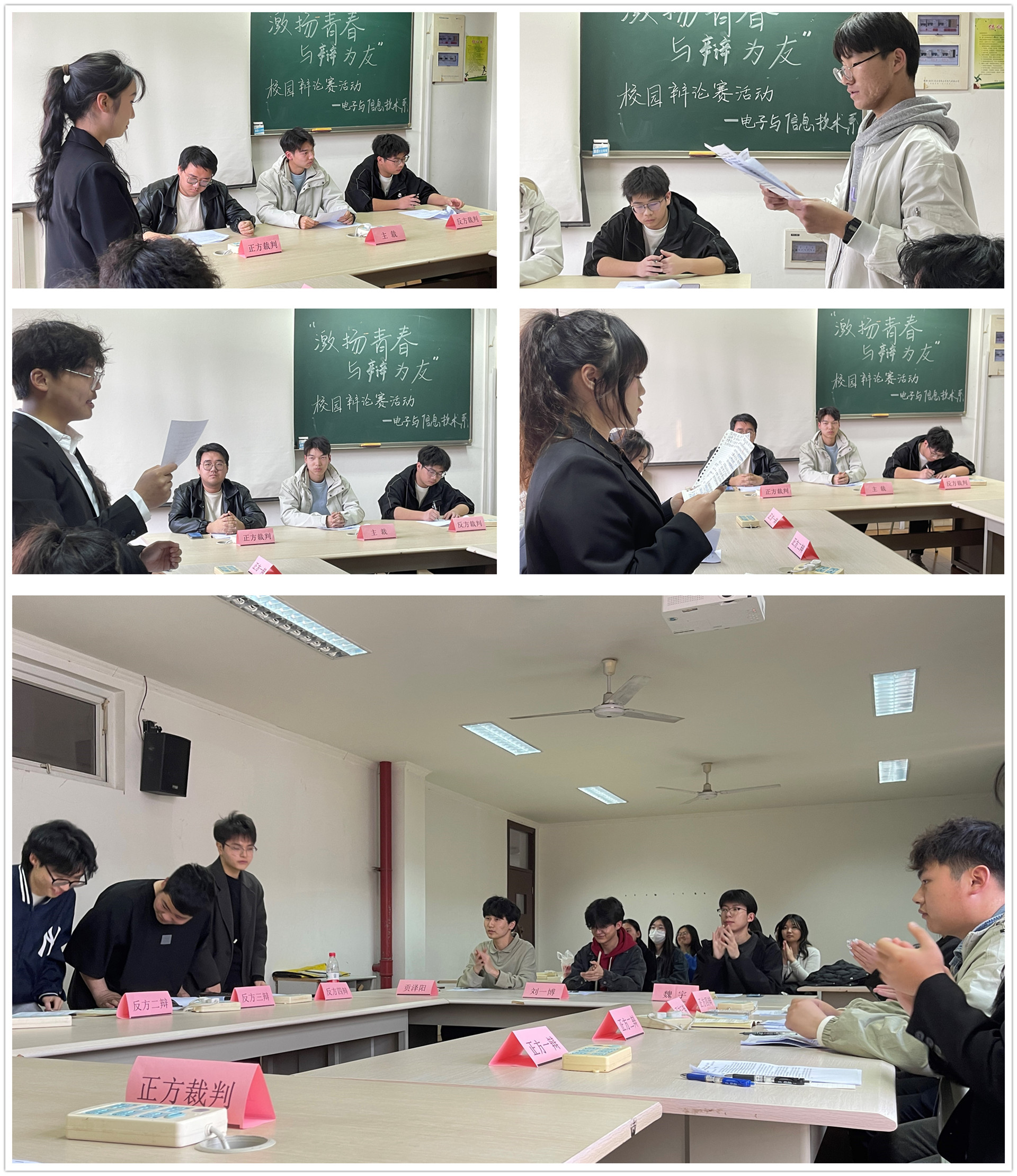 为提升同学们思辨能力和创造能力,激发同学们自主思考能力,营造浓厚的思辨氛围,充分展示当代大学生昂扬向上、敢于辩驳的青春风采,3月21日晚,电子与信息技术系在6507教室开展“激扬青春 与辩为友”辩论赛。电信系团总支学生会成员参加活动。
