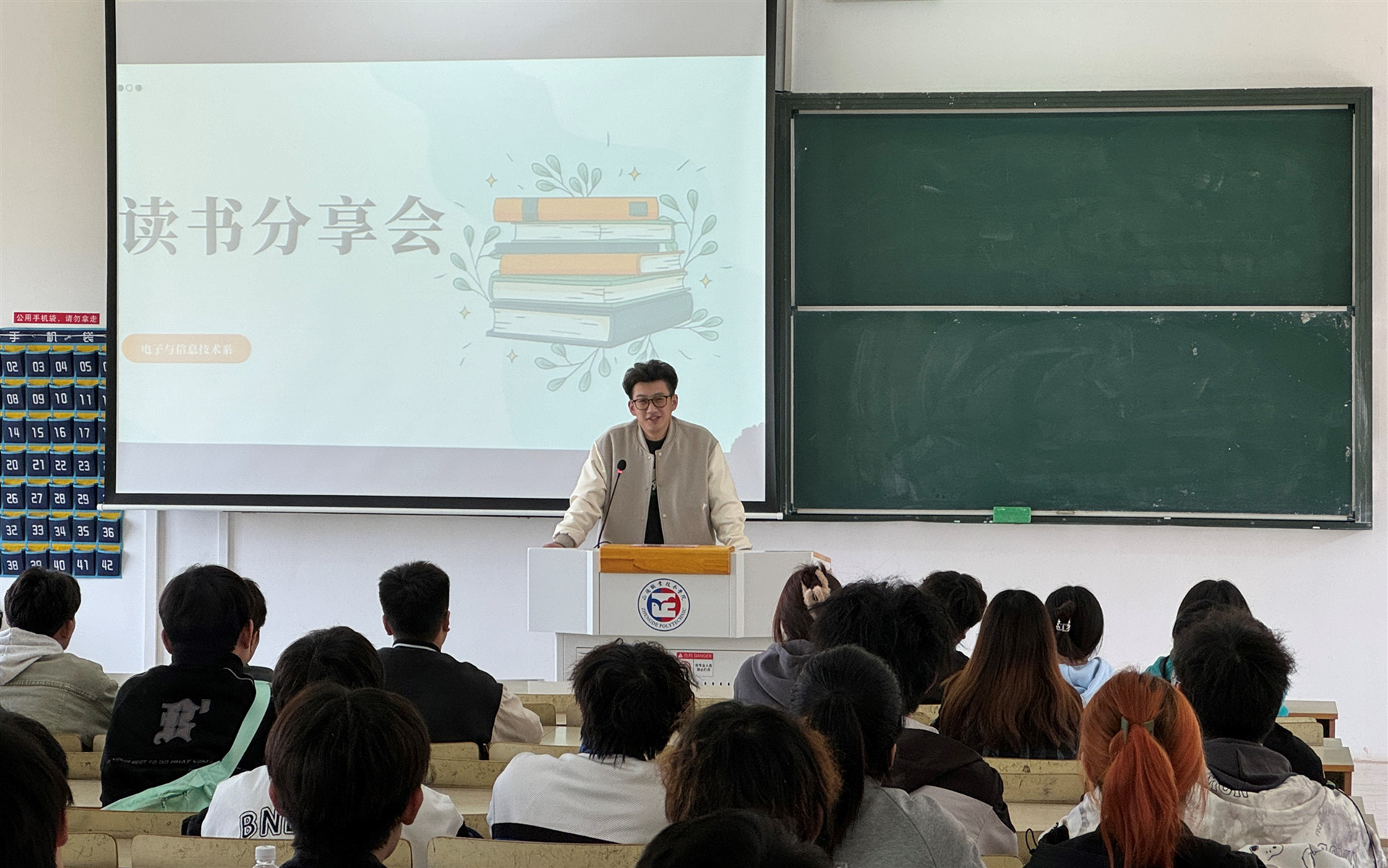 为进一步推动学风建设,促进学生阅读习惯的养成和综合素质的提升,4月8日,电子与信息技术系组织学生在1204教室组织开展读书分享会活动。本次活动由辅导员付磊主持。