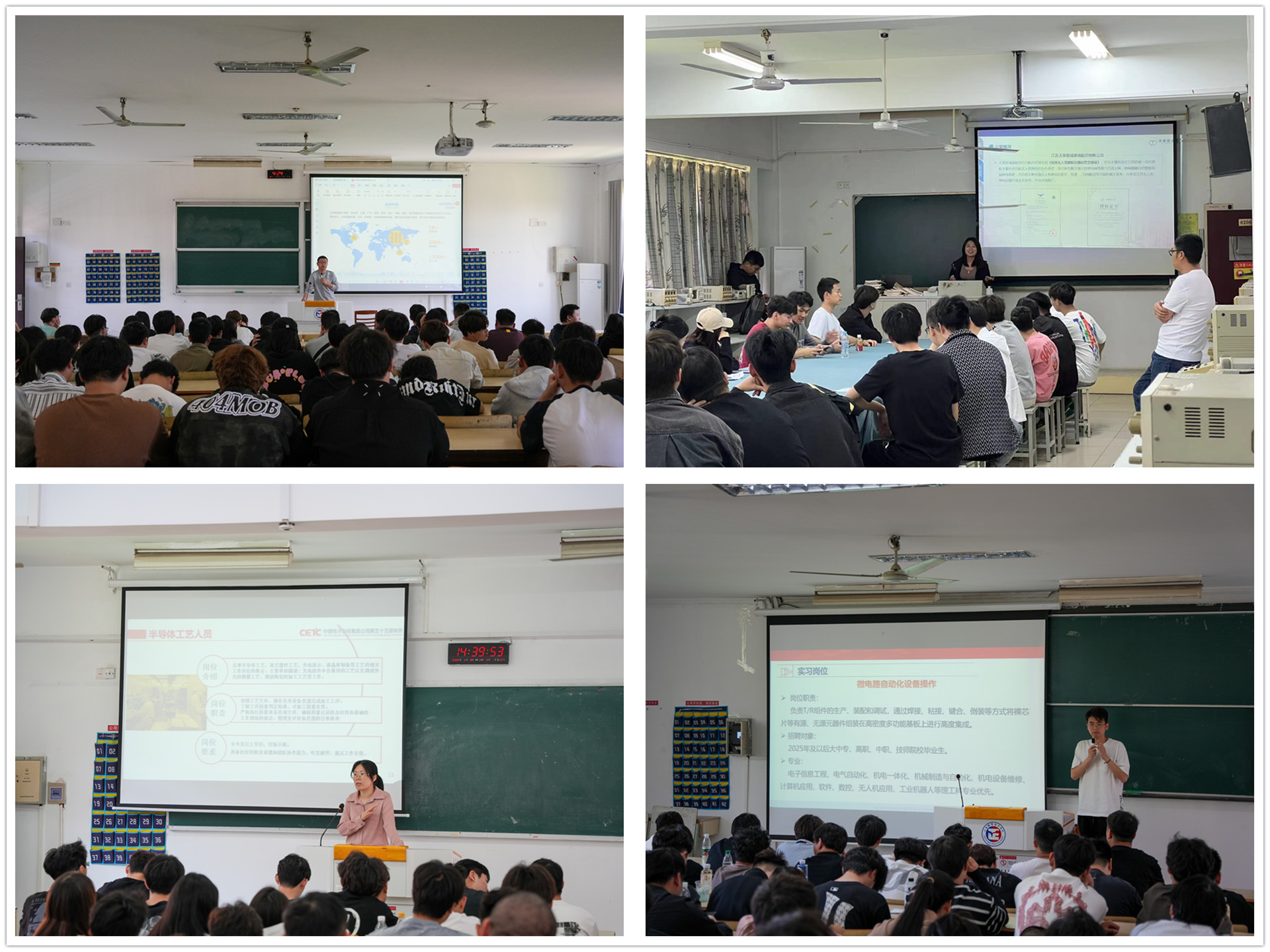 为进一步推动电子与信息技术系学生实习就业工作,深入推进校企合作,提升人才培养质量,促进毕业生高质量就业,5月8日下午,电子与信息技术系成功举办2024校园招聘宣讲会。此次活动邀请了中国电子科技集团公司第十四研究所、中国电子科技集团公司第五十一研究所吉水中电科微波科技有限公司、中国电子科技集团公司第五十五研究所、格力电器(南京)有限公司、江苏润和软件股份有限公司、南京建策科技股份有限公司、南京锋云聚信息科技有限公司、江苏天策智诚通用航空有限公司等8家知名企业。