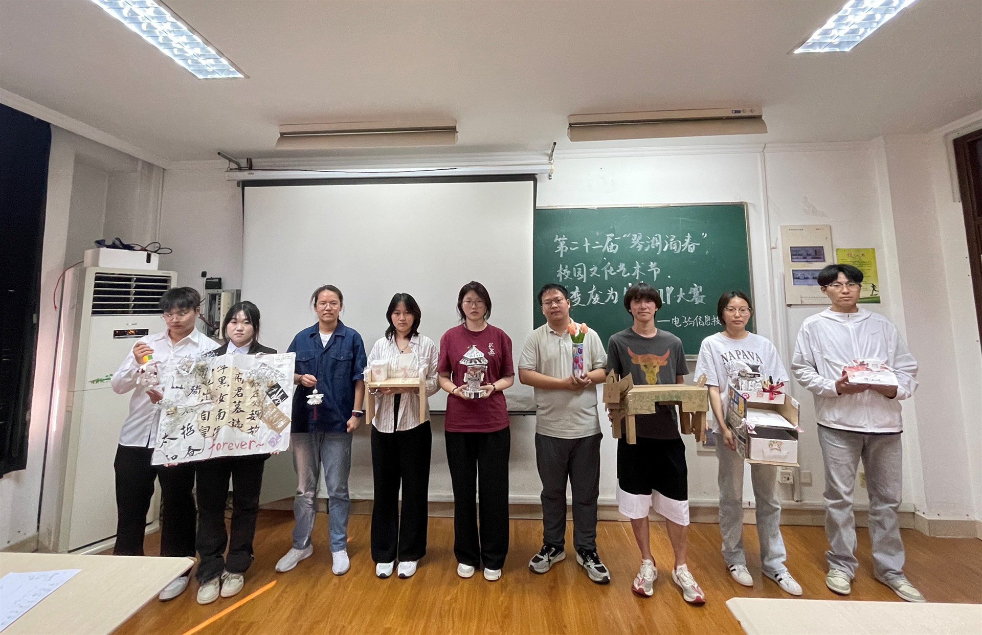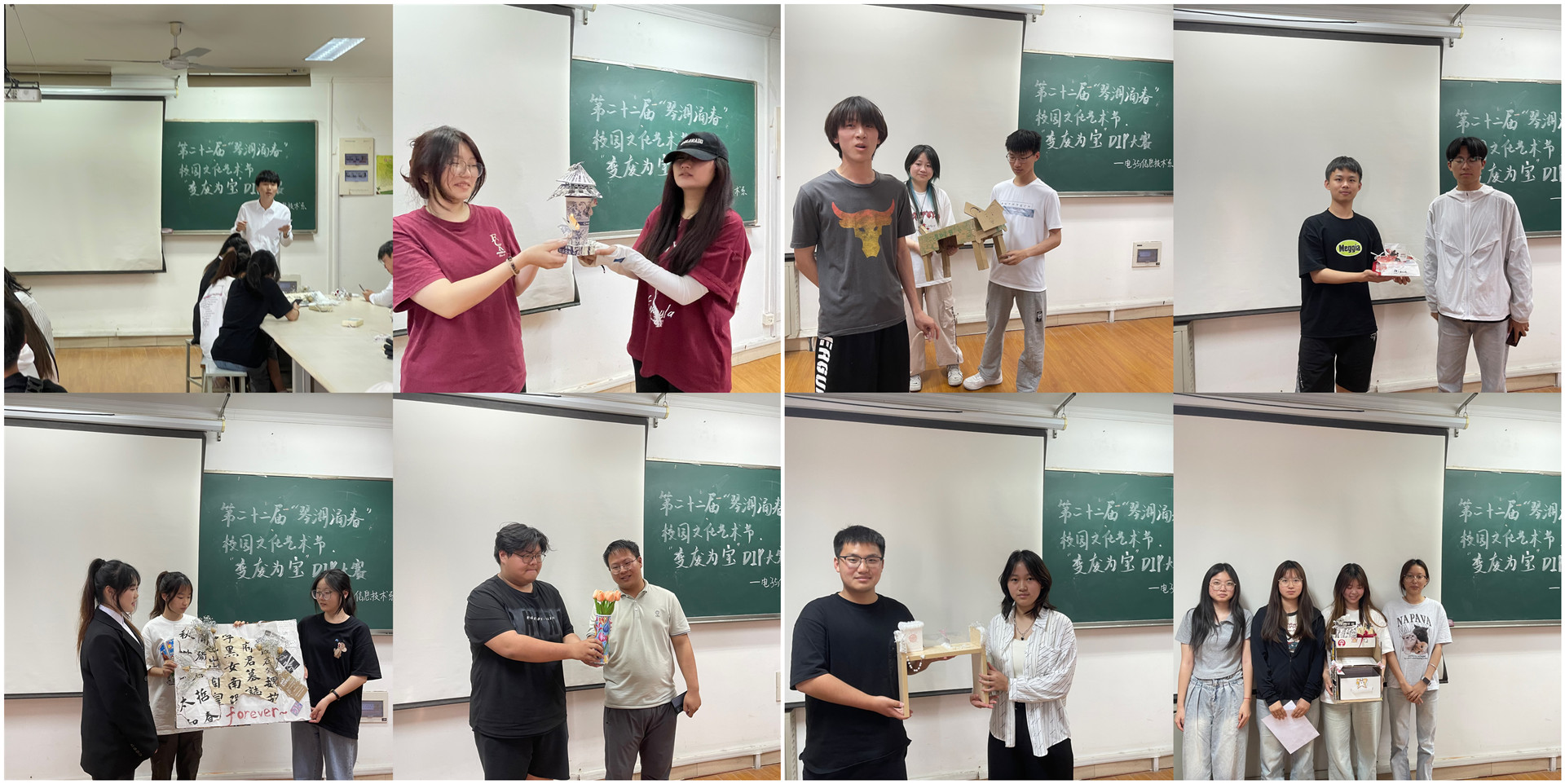 为进一步培养当代大学生勤俭节约的良好品德,增强学生的生态环境保护意识,5月23日下午,电子与信息技术系在6507教室开展第二十二届“琴湖涌春”校园文化艺术节“变废为宝”DIY大赛。
