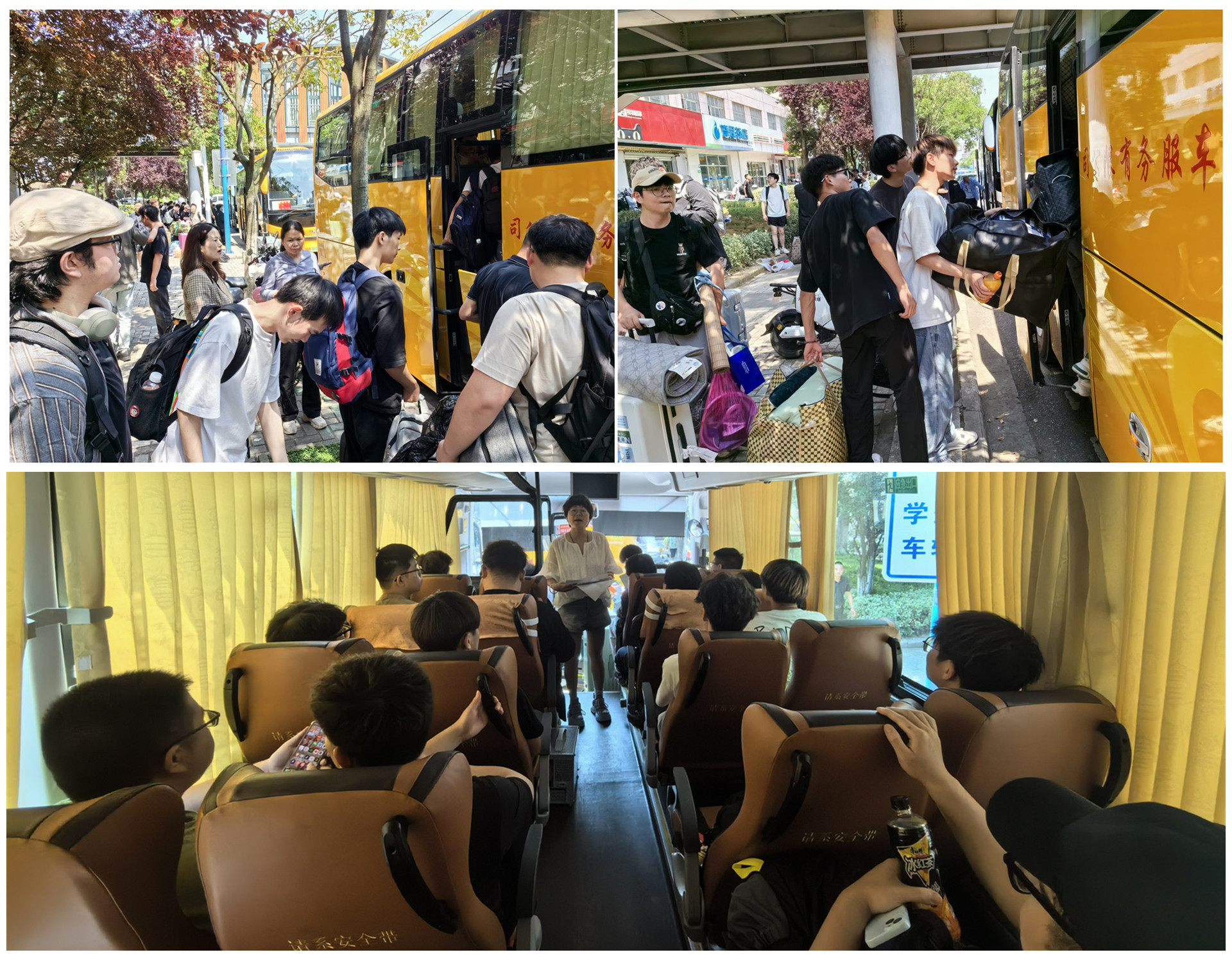在电子与信息技术系的统一组织下,同学们在学院北区统一乘坐大巴踏上了期待已久的岗位实习之路。专业教师王晓娟、余爱华,辅导员王雯、谢雅婷等四位老师帮助同学们完成行李搬迁及赴中电十四所实习的准备工作。途中,王雯老师对参加此次岗位实习的同学交代了相关事项,她希望同学们要敢于吃苦、善于沟通思考,通过岗位实习,能够学会企业员工的爱岗敬业精神、吃苦耐劳精神、严肃认真的工作态度,在实习中诚实、守时,将自己所学化作建设祖国的一块块砖瓦。