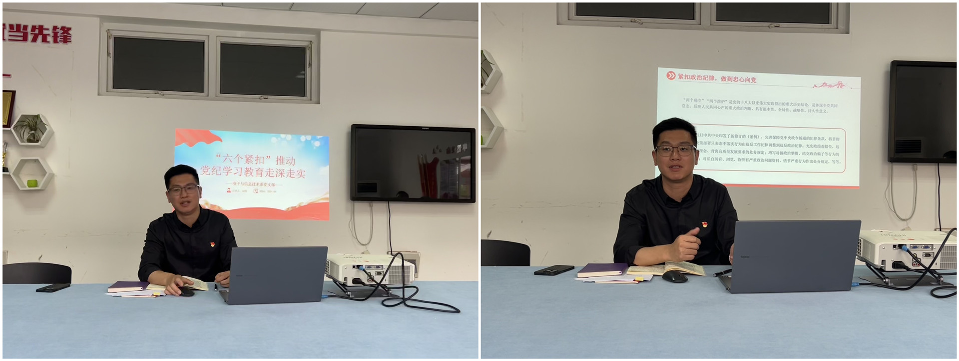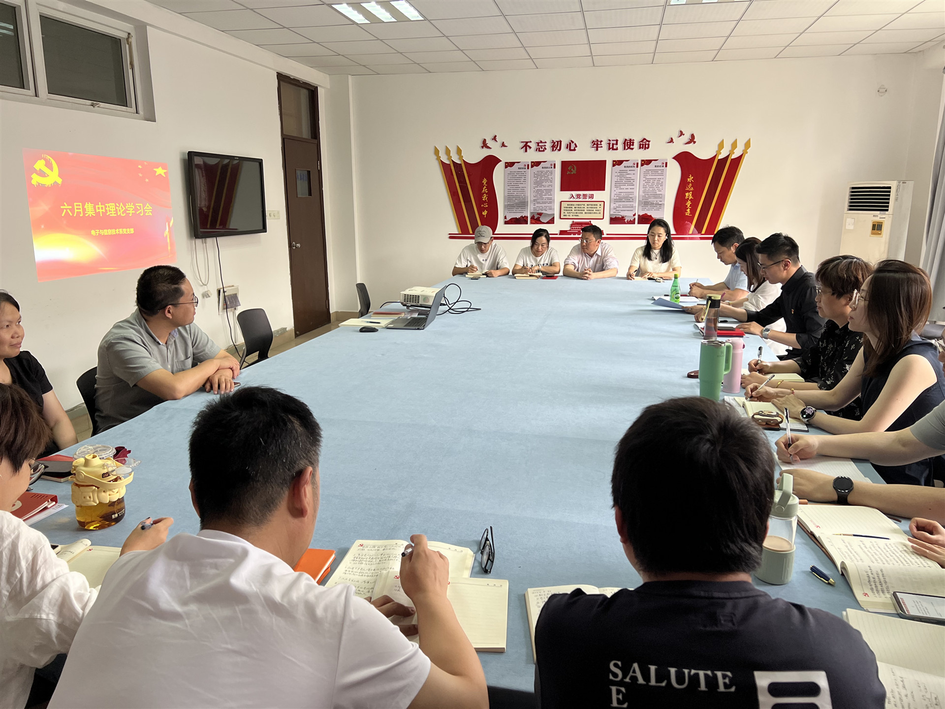 为进一步扎实开展党纪学习教育,引导支部全体党员真正把纪律规矩转化为政治自觉、思想自觉、行动自觉,6月6日下午,电子与信息技术系党支部在6407会议室开展支部书记讲纪律党课暨六月理论学习活动,活动由支部书记赵欣主持,支部全体党员参加。