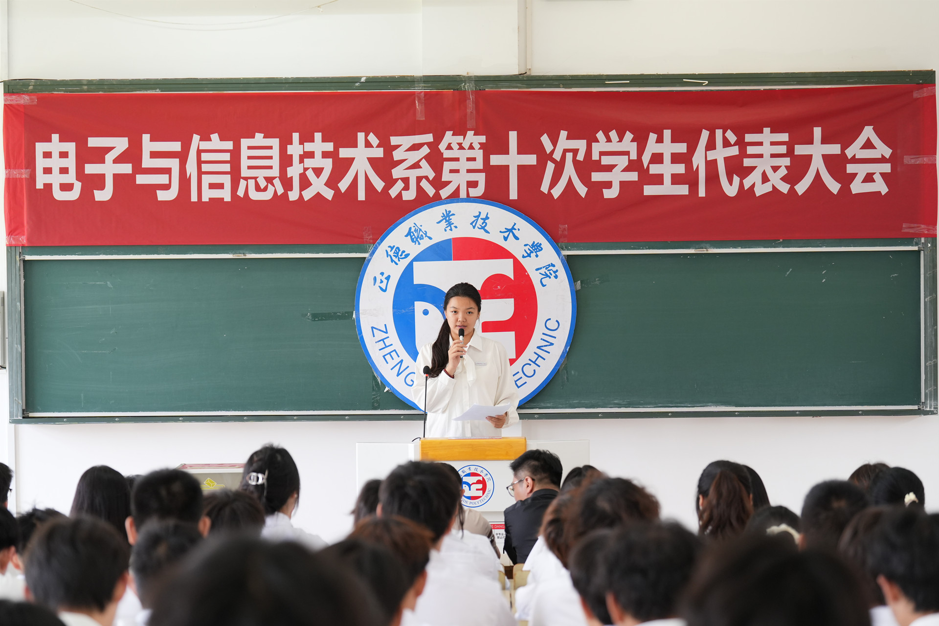 2024年6月6日,电子与信息技术系学生会在1302教室举行第十次学生代表大会,电子与信息技术系党支部书记赵欣、团总支书记兼大会秘书长何华智、院学生会执行主席朱禄怡、兄弟院系学生会代表和70名电信系学生代表参加会议。会议由电信系学生会执行主席李奕潼同学主持。