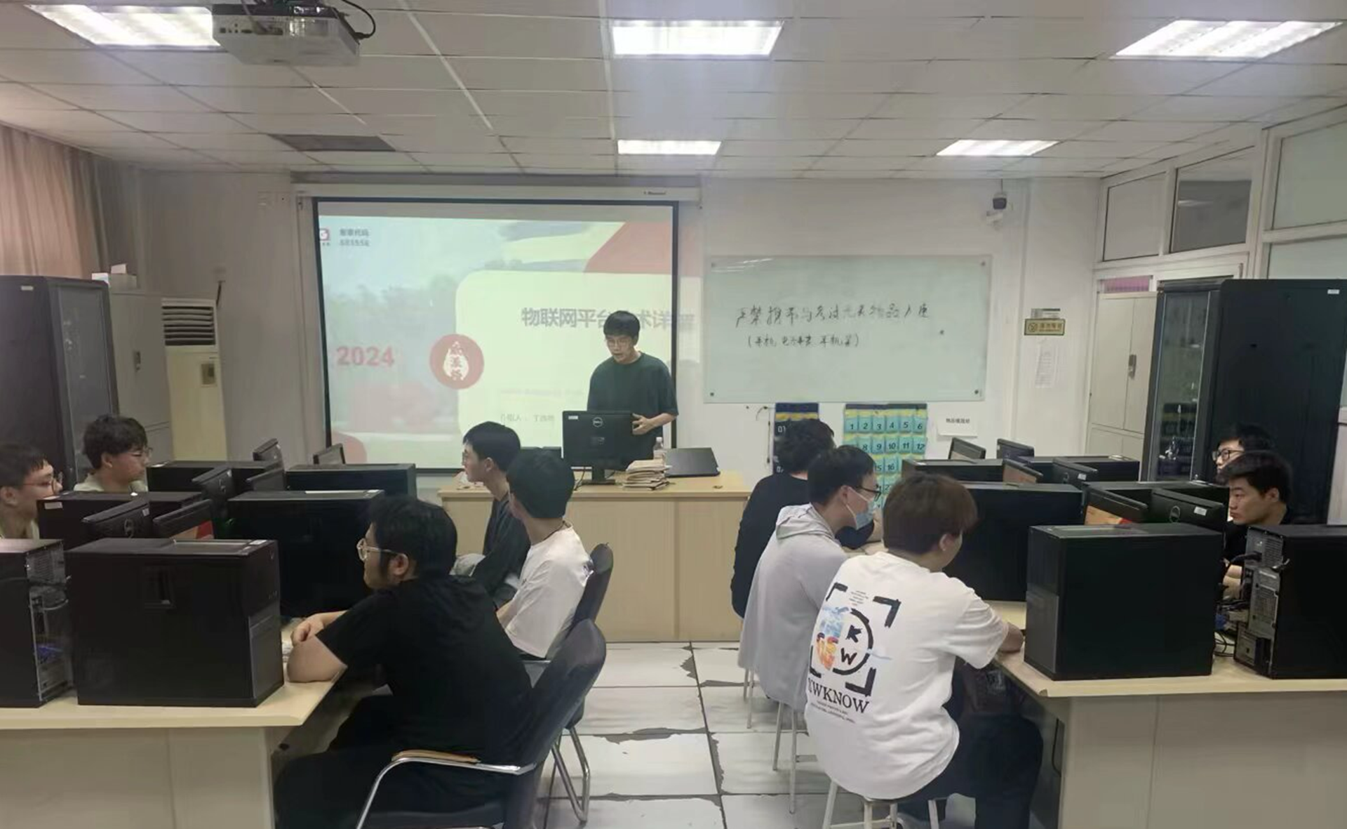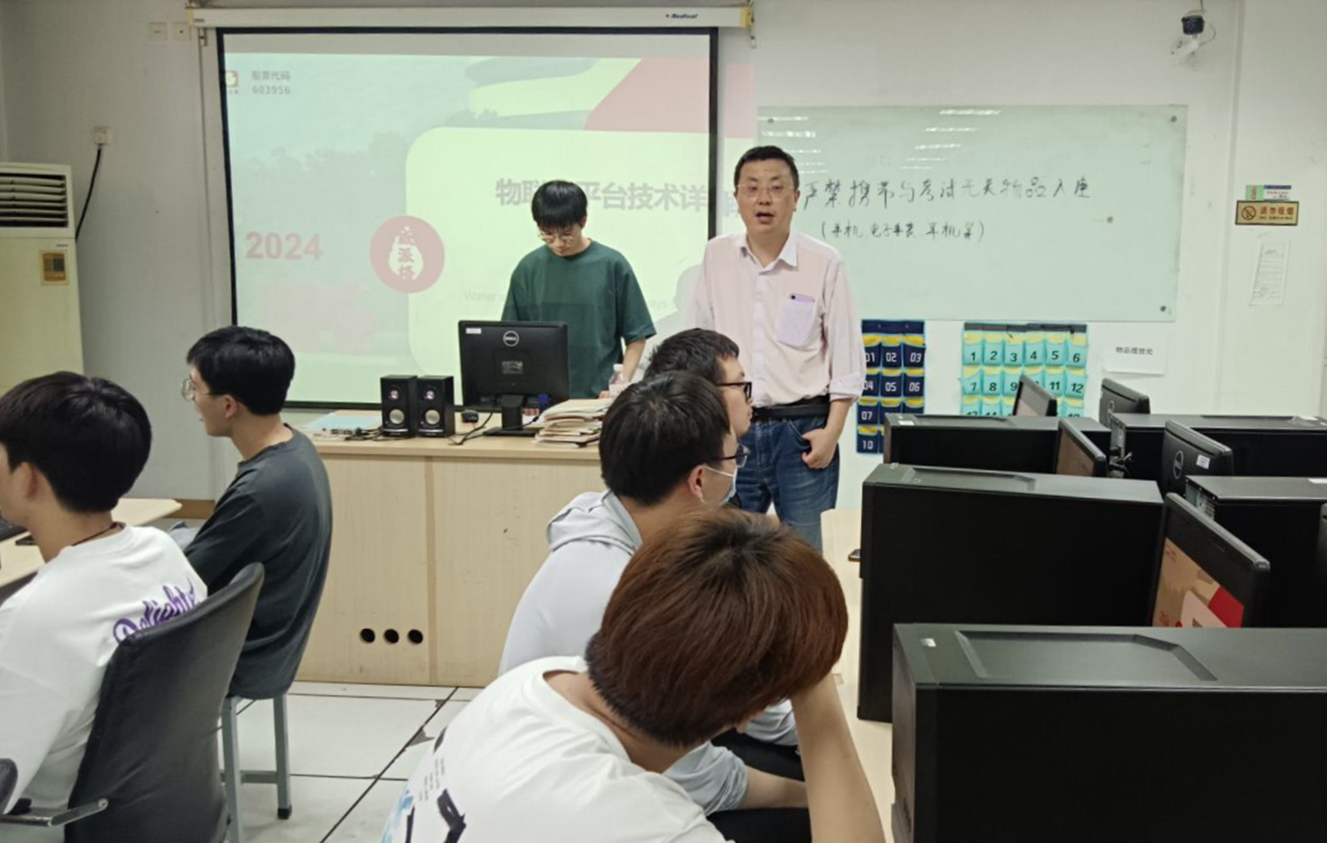 首先,工程师丁声亮以“物联网平台技术详解”为主题,为学生们带来了一场深入浅出的技术讲座。他详细讲解了物联网平台的核心技术、架构设计以及在智慧水务领域的应用实例。通过丁声亮的讲授,学生们对物联网技术在行业中的应用有了基本的认识和掌握,也为他们未来从事相关工作打下了坚实的基础。