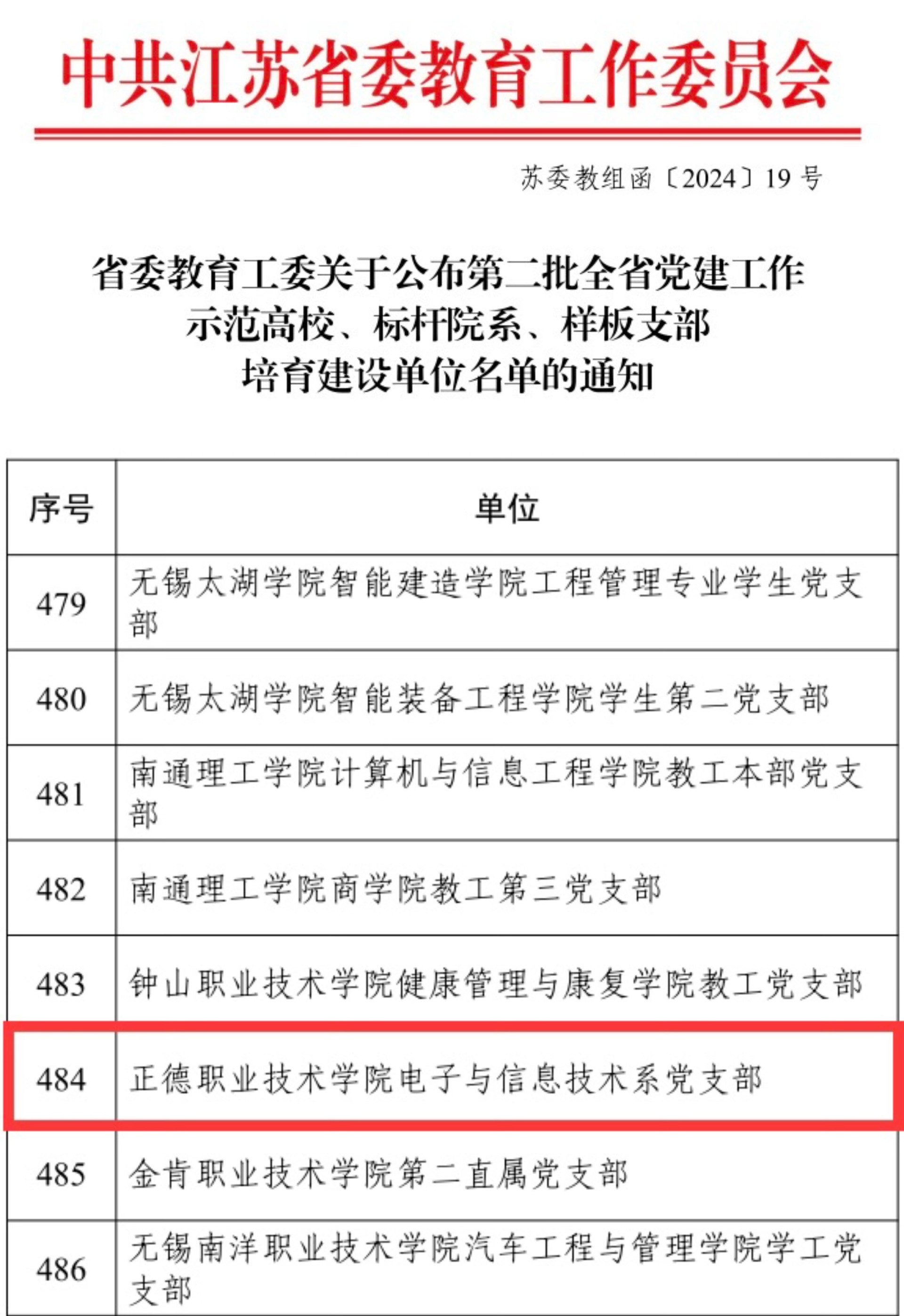 近日,省委教育工委办公室公布了关于新时代江苏高校三级党组织“强基创优”建设计划第二批遴选结果,电子与信息技术系党支部被遴选为第二批“江苏省党建工作样板支部”培育建设单位。