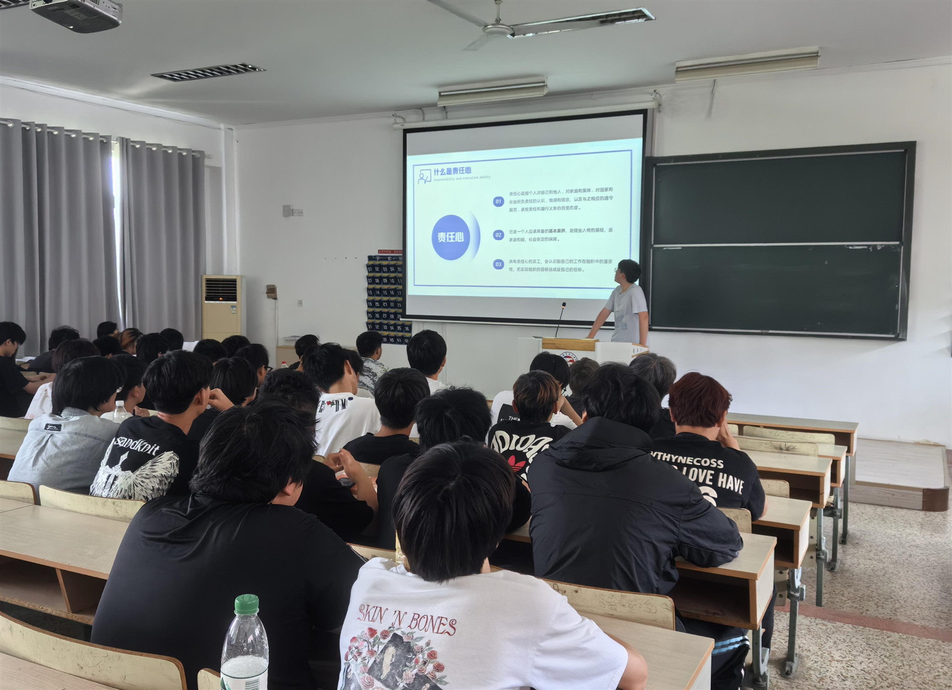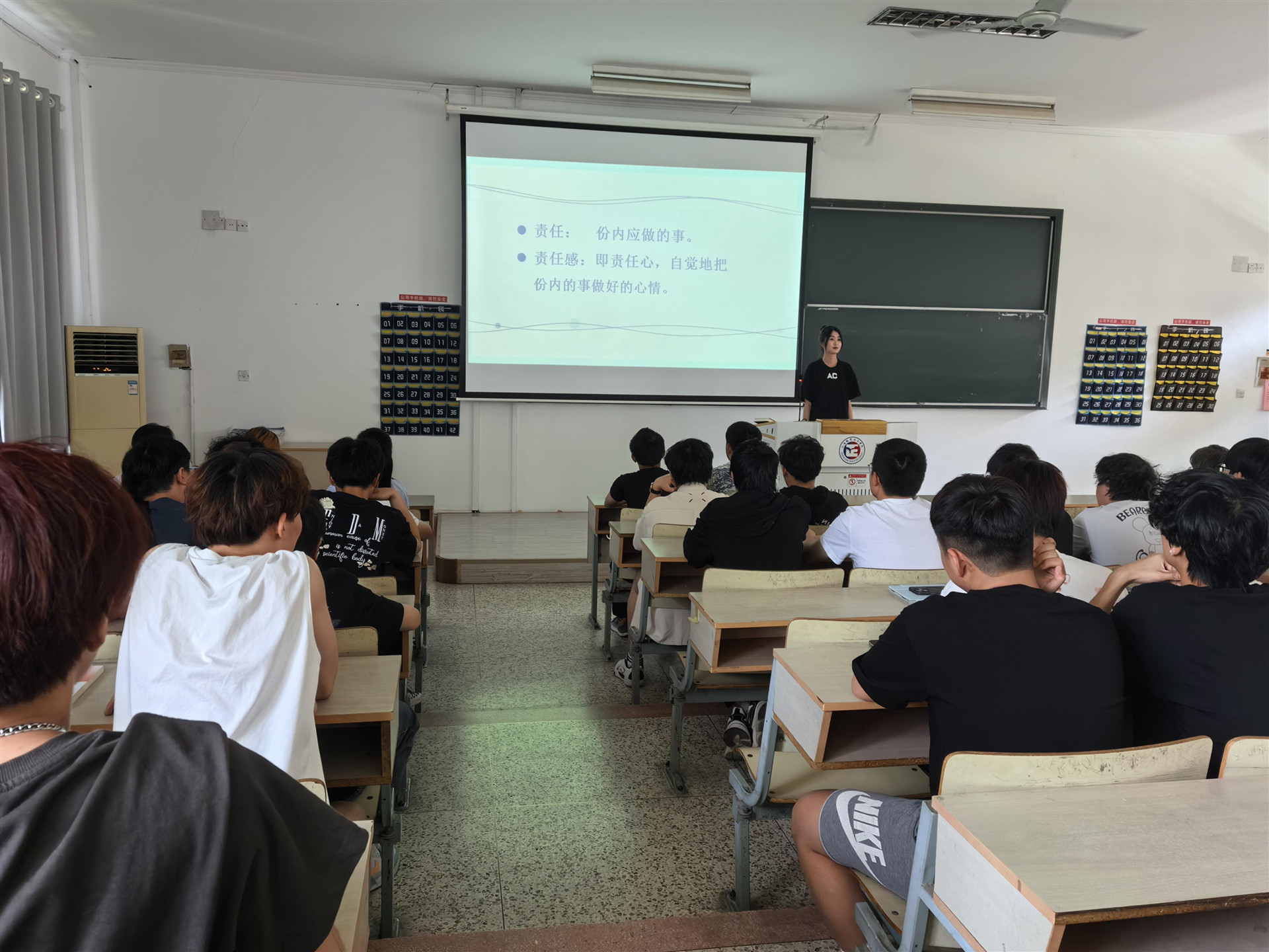 活动现场,付磊进行了一场“五字”教育中关于“责”文化的讲座。他从历史、文化、社会等多个角度阐述了责任的重要性,深入浅出地讲解了责任的内涵和价值。在班会过程中,同学们积极参与讨论,纷纷表示要将责任理念内化于心、外化于行。陈雨露同学还分享了自己在学习、生活中以身作则的亲身经历,用实际行动诠释着责任的力量。