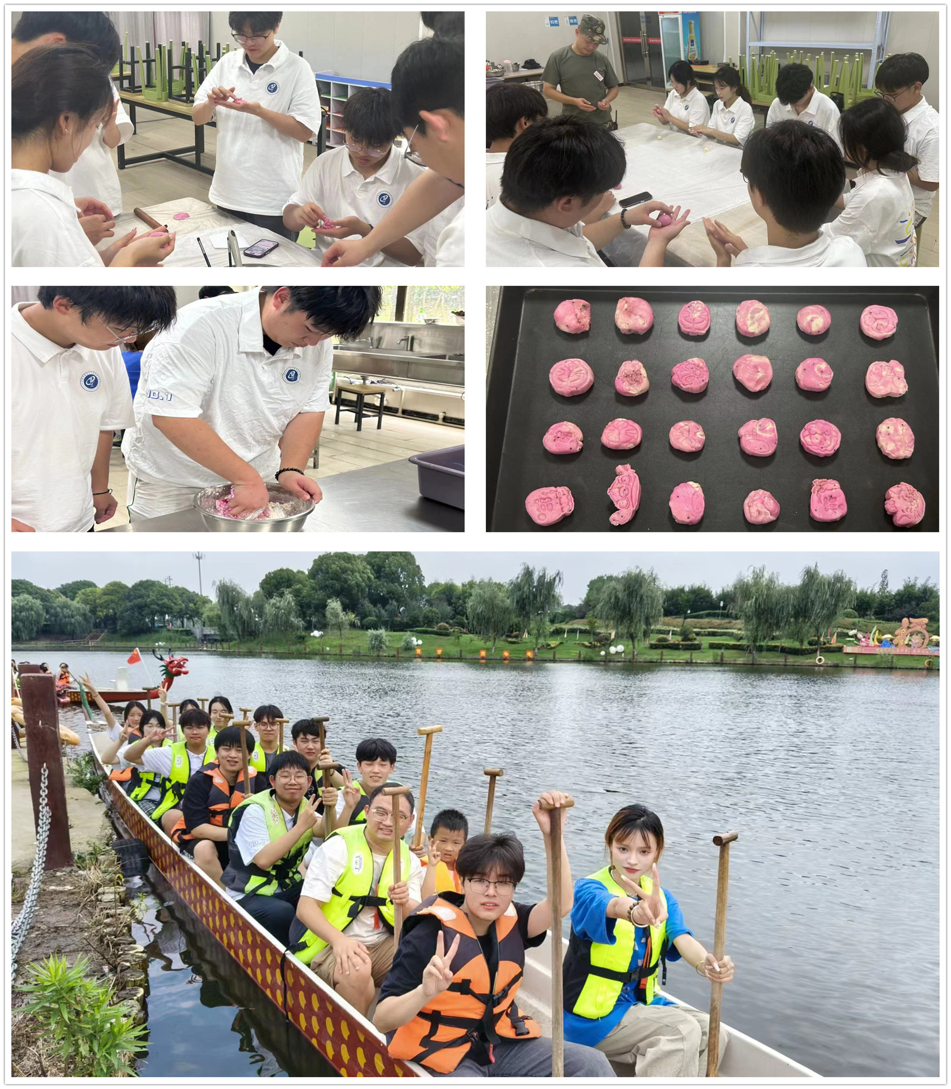 团队于7月1日在实践基地举行了划龙舟比赛和制作芋头酥活动。随着龙舟比赛开始的发令枪响,队员们齐心协力,口号声整齐响亮。他们心往一处想,劲往一处使,充分展现了团队的默契与协作。为提高同学们的动手能力,队员们亲自动手制作了芋头酥,在教练的指导下,他们通过和面、擀面、包馅、烤制等步骤,成功的制作出了属于自己的第一份芋头酥。通过此次活动,队员们深刻体会到了团队合作的力量。