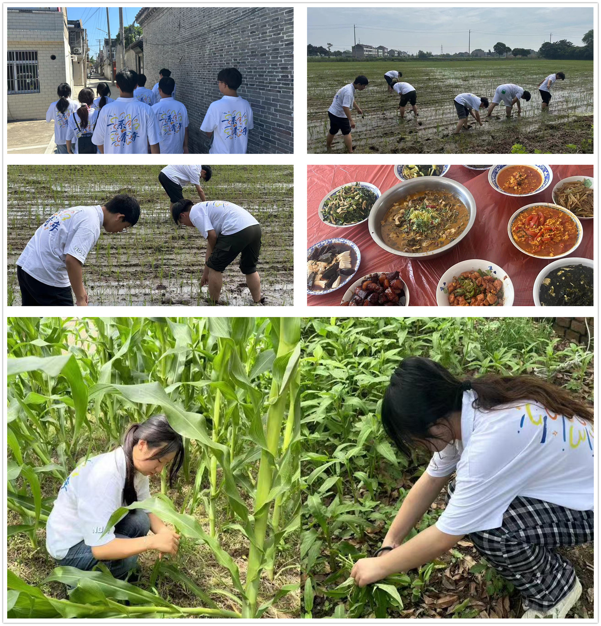 7月2日,实践小队来到泰兴市济川街道三阳村。跟随三阳村村民的步伐,实践团成员深入田间地头,挽起衣袖,卷起裤脚,学习插秧、处理杂草等帮助村民们干农活。在传统的厨房中,队员们做到了“自己动手,丰衣足食”。在大家的协作下,一道道色香味俱全的菜肴逐渐形成。随后,实践团深入村民家中实地走访调研更加直观的了解到了三阳村村民生活水平、受教育程度等,并将情况及村民们的意见建议向当地村委会反馈,也让村民们感受到当代大学生对乡村振兴的信心及决心。