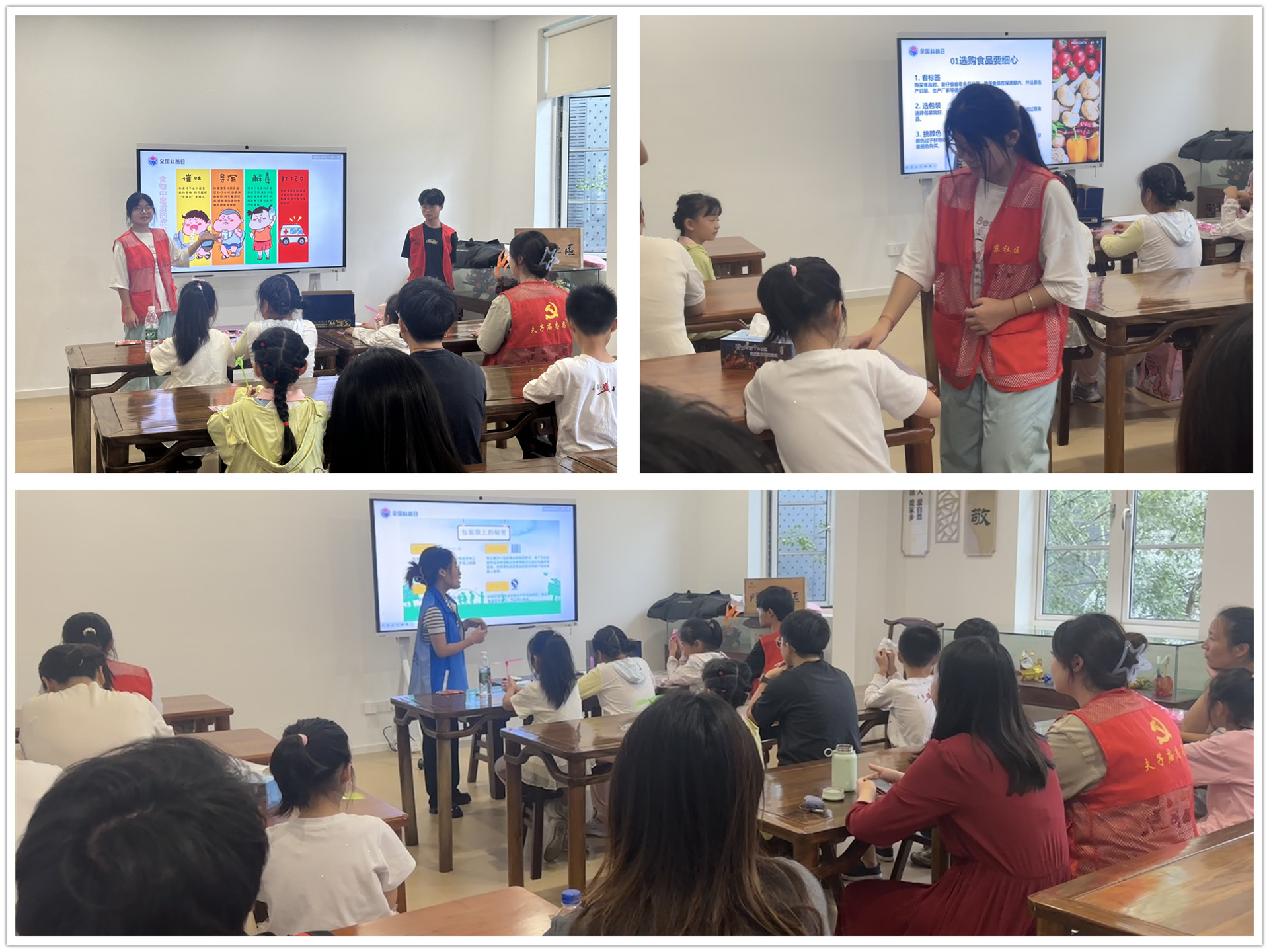在门东社区党群服务中心,电信系志愿者与社区工作人员相配合,以科普、游戏互动等方式,生动地向青少年们展示了健康饮食对人们的重要性。活动中,志愿者们不仅为青少年介绍了食品选购、储存等方面的注意事项,还详细解析了如何识别假冒伪劣产品,活动中穿插的知识问答环节更是令现场气氛热烈,电信系志愿者在其中帮忙维持秩序,分发小礼品的身影也让这次活动更添了一份“大朋友”带“小朋友”的温暖。