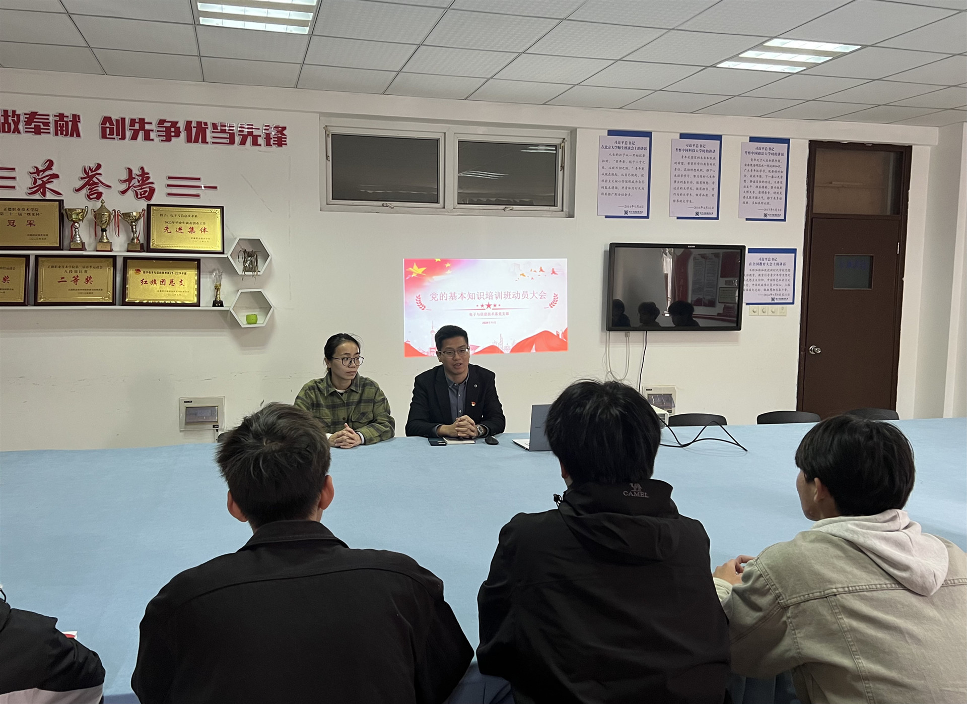 11月6日,电子与信息技术系党支部召开第41期党的基本知识培训班动员大会。参加此次动员大会的有电子与信息技术系党支部书记赵欣、组织委员刘敏婧、以及入党积极分子19名。大会由刘敏婧主持。