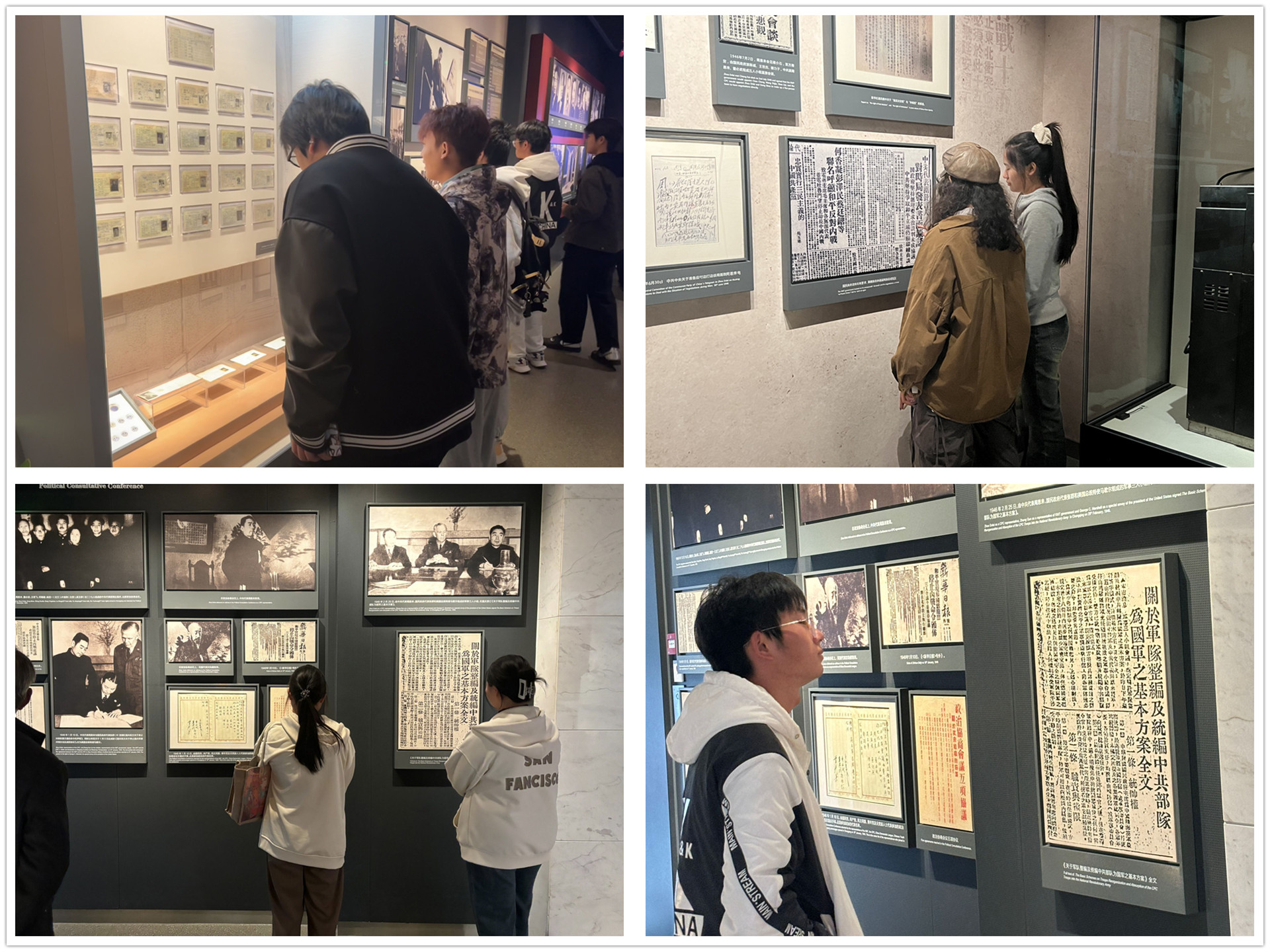 同学们聚精会神地观看了展厅内展出的一系列宝贵视频资料、历史照片、实物展品等,一同追忆着党的先驱者们披荆斩棘、英勇奋斗的光辉历程。在纪念馆的实物展示区,同学们通过一件件实物,如旧时的文件、通讯工具等,深刻感受到了革命先辈们为了民族独立和人民幸福所付出的巨大牺牲和不懈努力。
