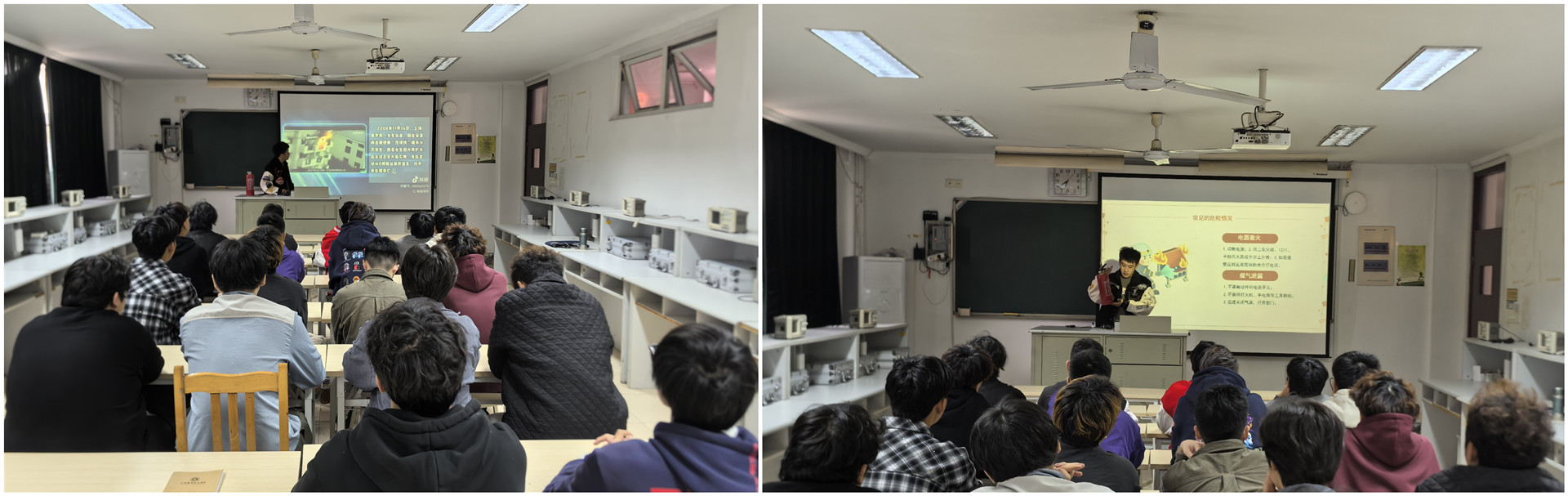 本次活动由具有丰富消防救援经验的辅导员付磊进行讲解。付磊曾在上海市浦东新区公安消防支队周渡中队担任战斗员和文书,亲身参与过多起重特大灭火救援战斗,其专业知识和实战经验为本次活动增添了厚重的底色。