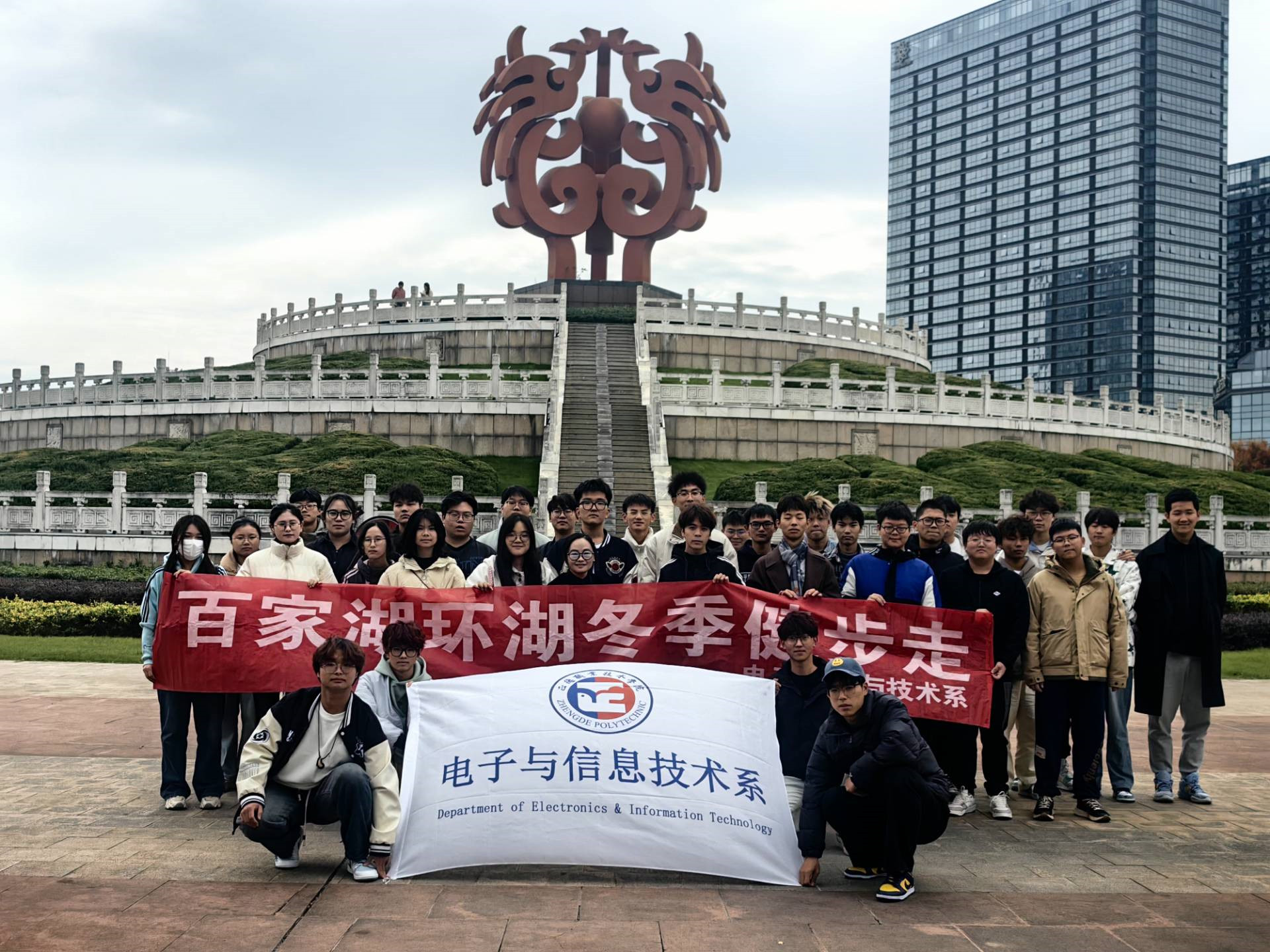 为丰富学生校园文化生活,不断增强和提高身体素质,促进学生形成科学、文明、健康的学习和生活方式,11月24日,电子与信息技术系举办百家湖环湖健步走活动。