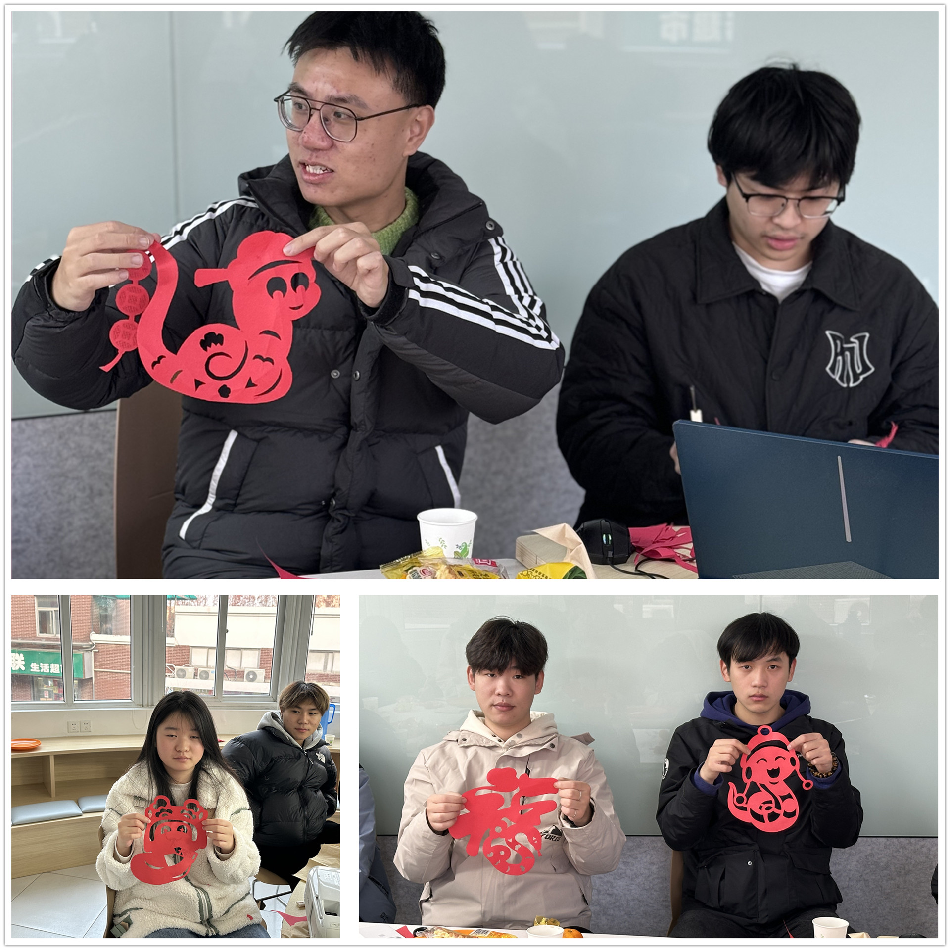 茶香袅袅中,同学们轮流分享自己近期阅读的佳作,大家畅谈书中的精彩段落、深刻感悟与个人启示。同时,另一项传统手工艺——剪纸也引起了同学们的兴致,纷纷动起手来。翁鑫辰详细介绍了剪纸文化的历史渊源、技能方法等相关内容,并亲自示范折叠剪纸的做法。同学们跟随指导,创作出一幅幅充满年味儿的蛇年剪纸作品。