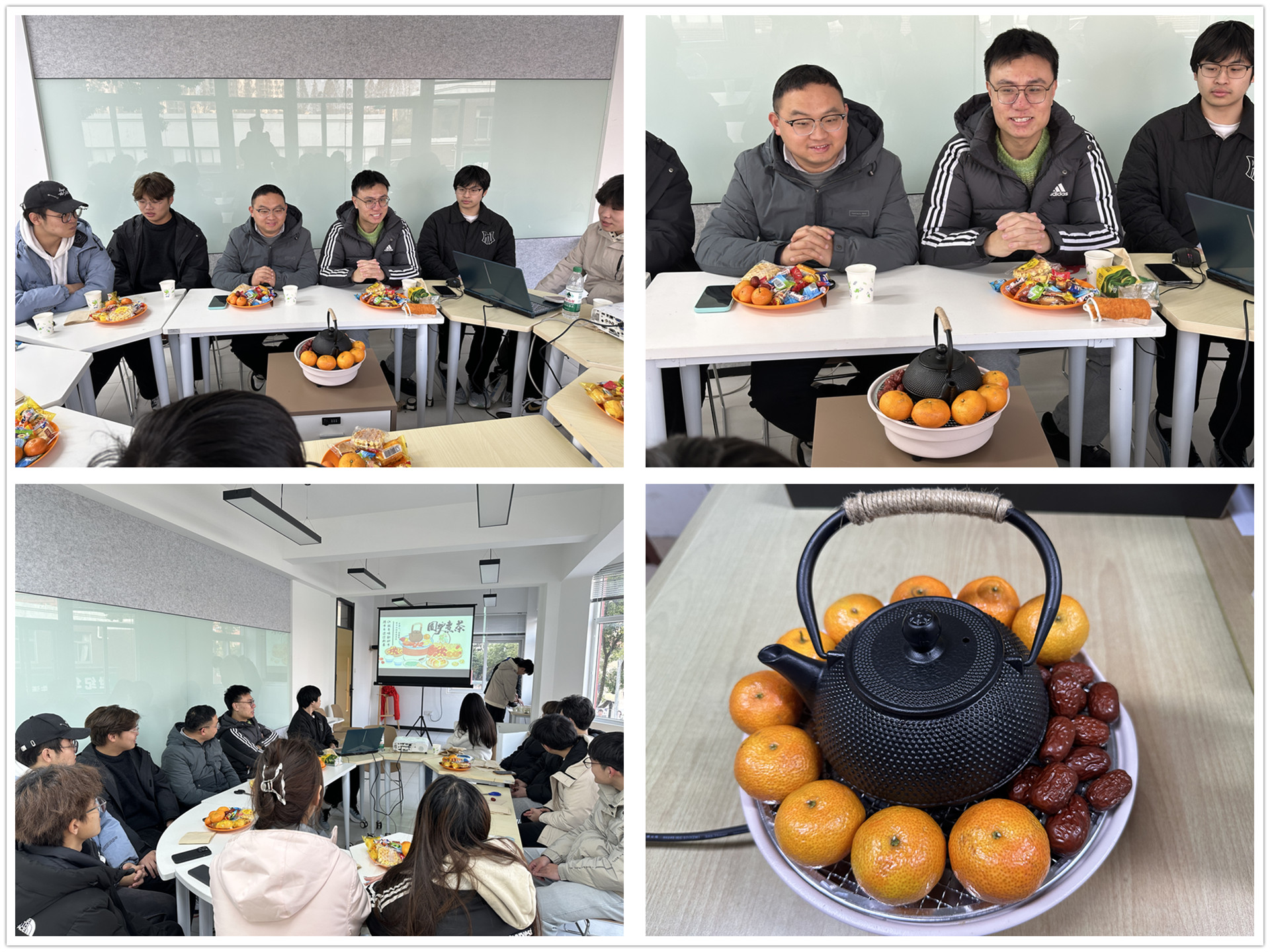 窗外寒风凛冽,屋内暖意融融。在活动中,翁鑫辰巧妙地运用图片与视频资料,深入浅出地阐释了茶文化的精髓。同学们由此深刻体会到,茶文化不仅是中华文化宝库中的璀璨明珠,更是推动社会文明前行与经济繁荣不可或缺的力量。活动现场,茶香四溢,师生们围炉而坐,享受煮茶品茗的乐趣。在轻松愉快的氛围中,大家逐渐放松,从繁忙的期末学习工作中短暂抽身,畅谈2024年的成长与收获。